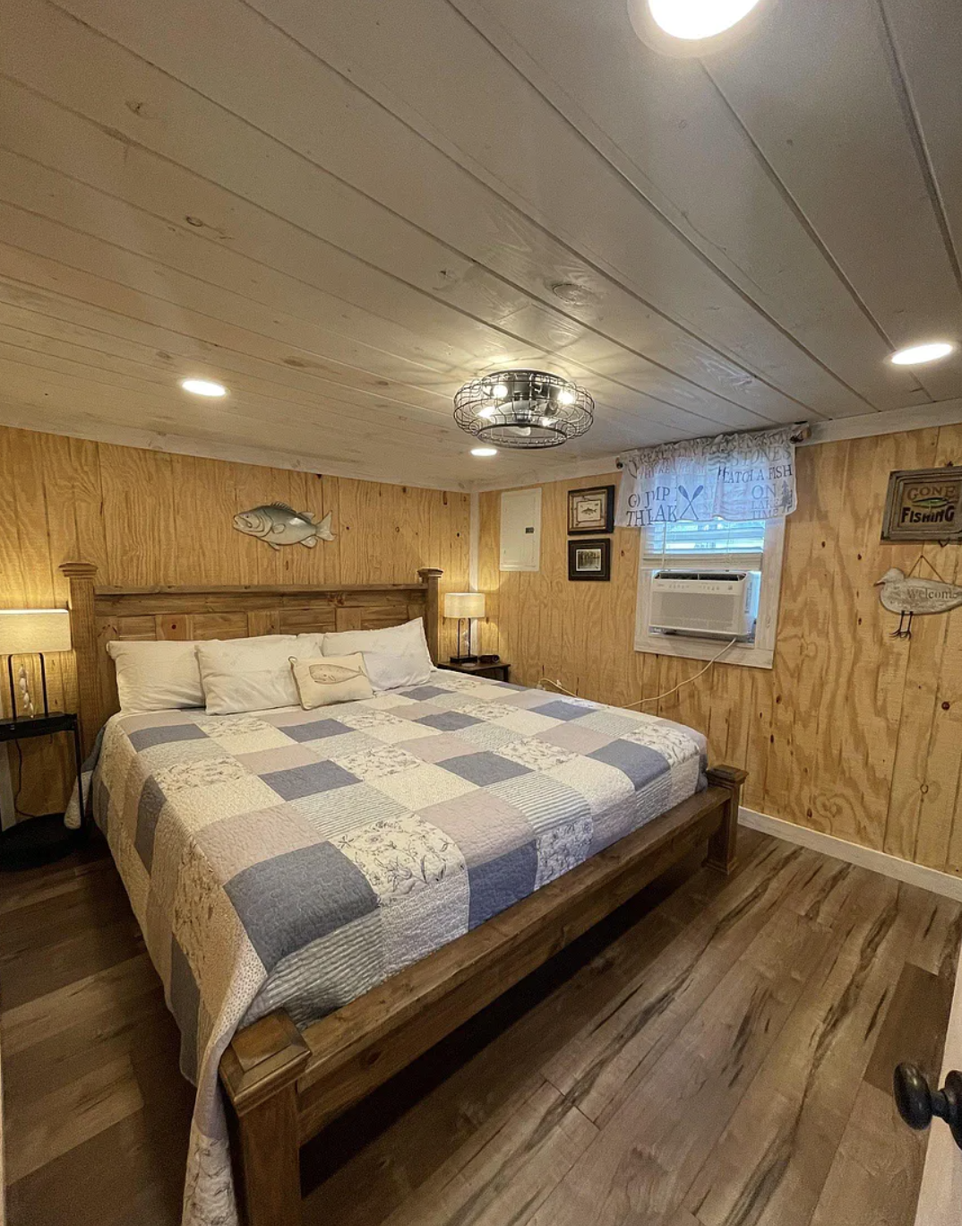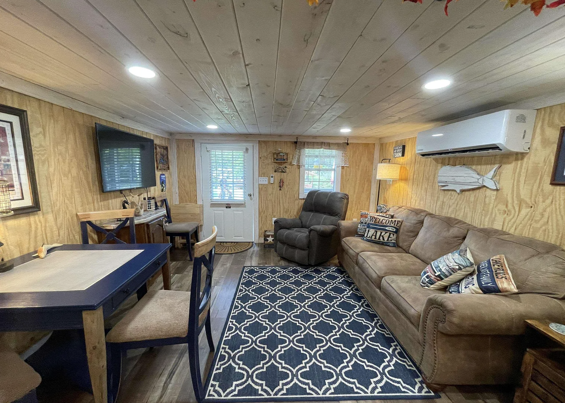 Vinyl plank flooring that can withstand wet feet coming from the lake, a full bathroom with contemporary fixtures, and central HVAC that can make the cabin cool even during hot Alabama summer days and warm when the autumn nights turn chilly are just a few of the things that have been thought through to the very last detail in this cabin.