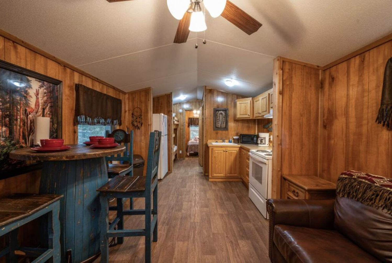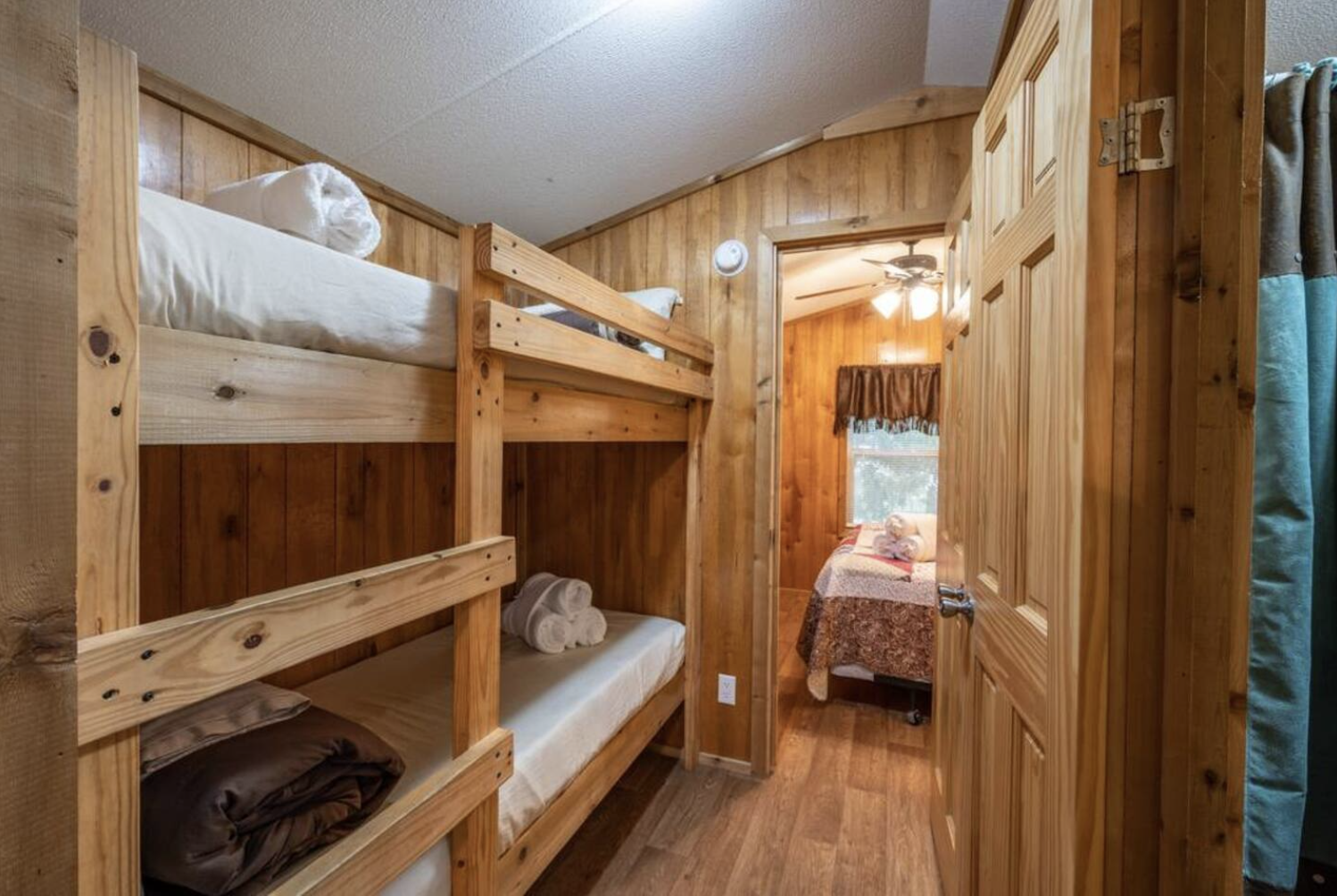 What makes the cabin lovely is its minimalism and easy-to-use features—the manner in which the pine-scented air comes through the open windows, the firepit’s light sharing its warmth with the dark, and the sound of the people laughing at the picnic table. It is a place where the cabin becomes a vessel for adventure, the small area stimulating intimacy, and every detail, be it the queen bed or the twin bunk, making the stay feel like another home in the middle of nature of Oklahoma.