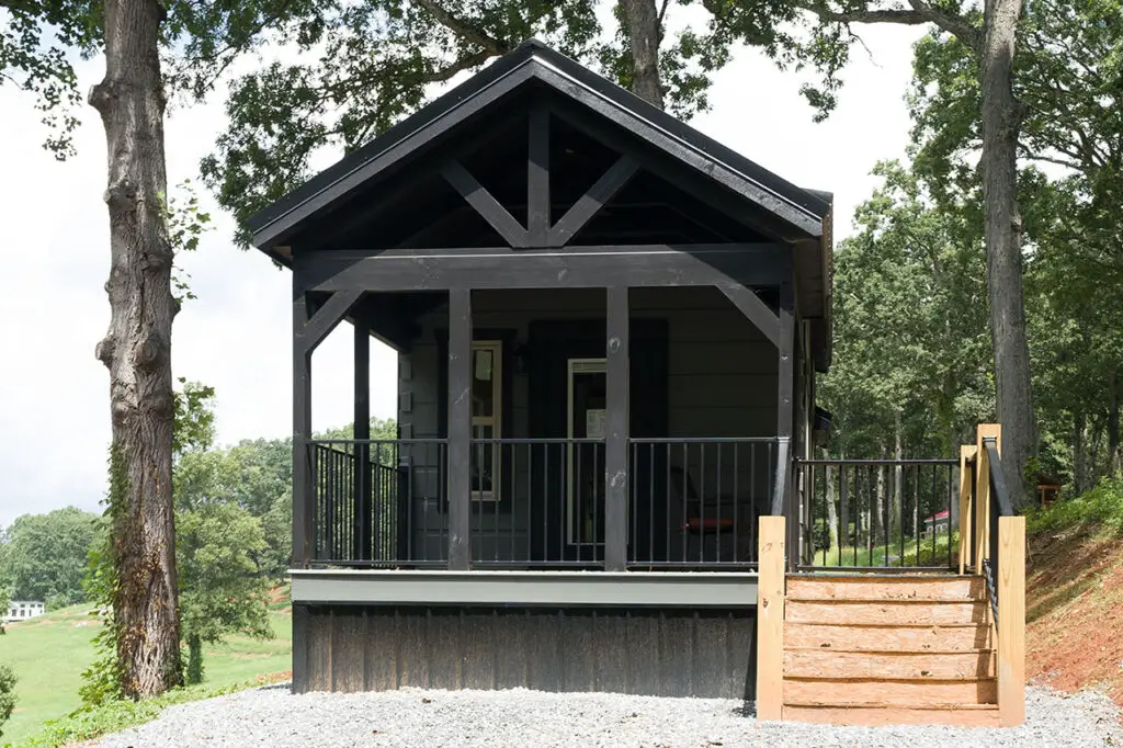 The cabin’s modern-rustic balance, with its Black roof and Foggy Wharf decking, ensures it fits seamlessly into Peaceful Meadows, a community designed for tiny-home living with wooded lots and shared amenities that enhance the experience. The 0.33-acre lot, with its privacy and potential for gardening or a small fire pit, becomes an extension of the home, the deck a beautiful spot for morning yoga or evening barbecues under the Georgia stars.