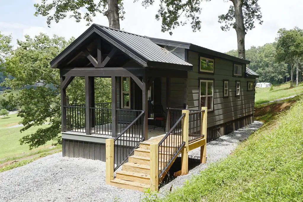 The Black roof, sleek and weather-resistant, caps the structure with a modern edge, ensuring it withstands Georgia’s humid summers and mild winters without losing its elegant silhouette. At $257,800, this park model from Tiny Life Homes includes the land, delivery, and full setup, with the 0.33-acre lot providing a private, wooded oasis that’s perfect for gardening, relaxing, or hosting friends under the stars. The cabin’s compact yet sturdy design qualifies it as an RV park model, allowing for easy financing and placement in communities like Peaceful Meadows, where the natural beauty of the Georgia countryside enhances the home’s serene charm.