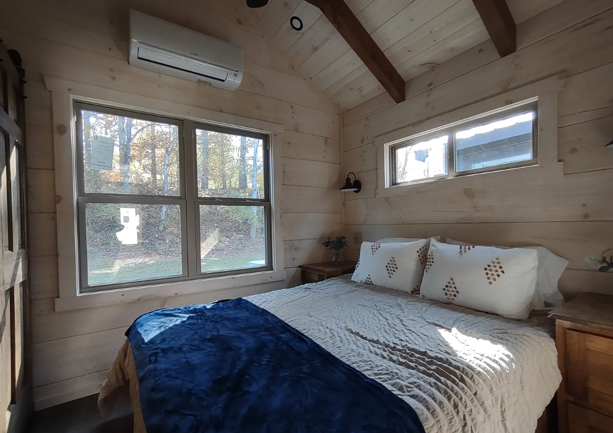 | Upgrades | Queen bed with nightstands, granite counters, mini-split HVAC, black appliances, stacked washer/dryer, shower/tub combo, banjo countertop, carpenter bee treatment |