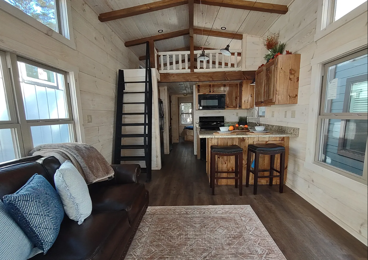 The Smoky 1227 tiny home from Tiny Life Homes is a beautiful showcase of how smart design can turn a 397-square-foot space into a luxurious, family-friendly retreat that feels both cozy and expansive. This 12-foot by 44-foot park model, with one bedroom, one bathroom, and a loft that comfortably sleeps six, is priced at $257,800 and includes the 0.33-acre Lot #25 in the serene Peaceful Meadows community in Georgia. Built by Tiny Life Homes, the Smoky 1227 combines the charm of a traditional cabin with modern upgrades like granite countertops, a Mitsubishi mini-split HVAC, and black appliances, making it an ideal choice for full-time living, weekend getaways, or a peaceful rental investment.