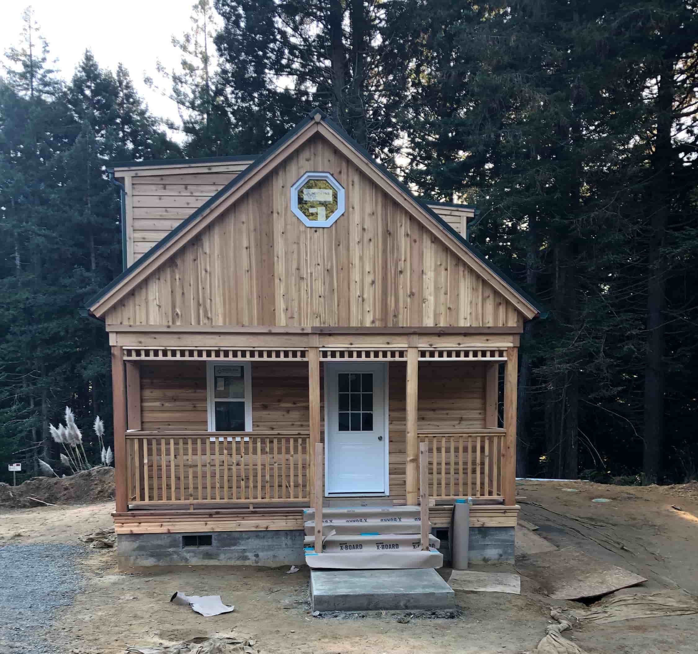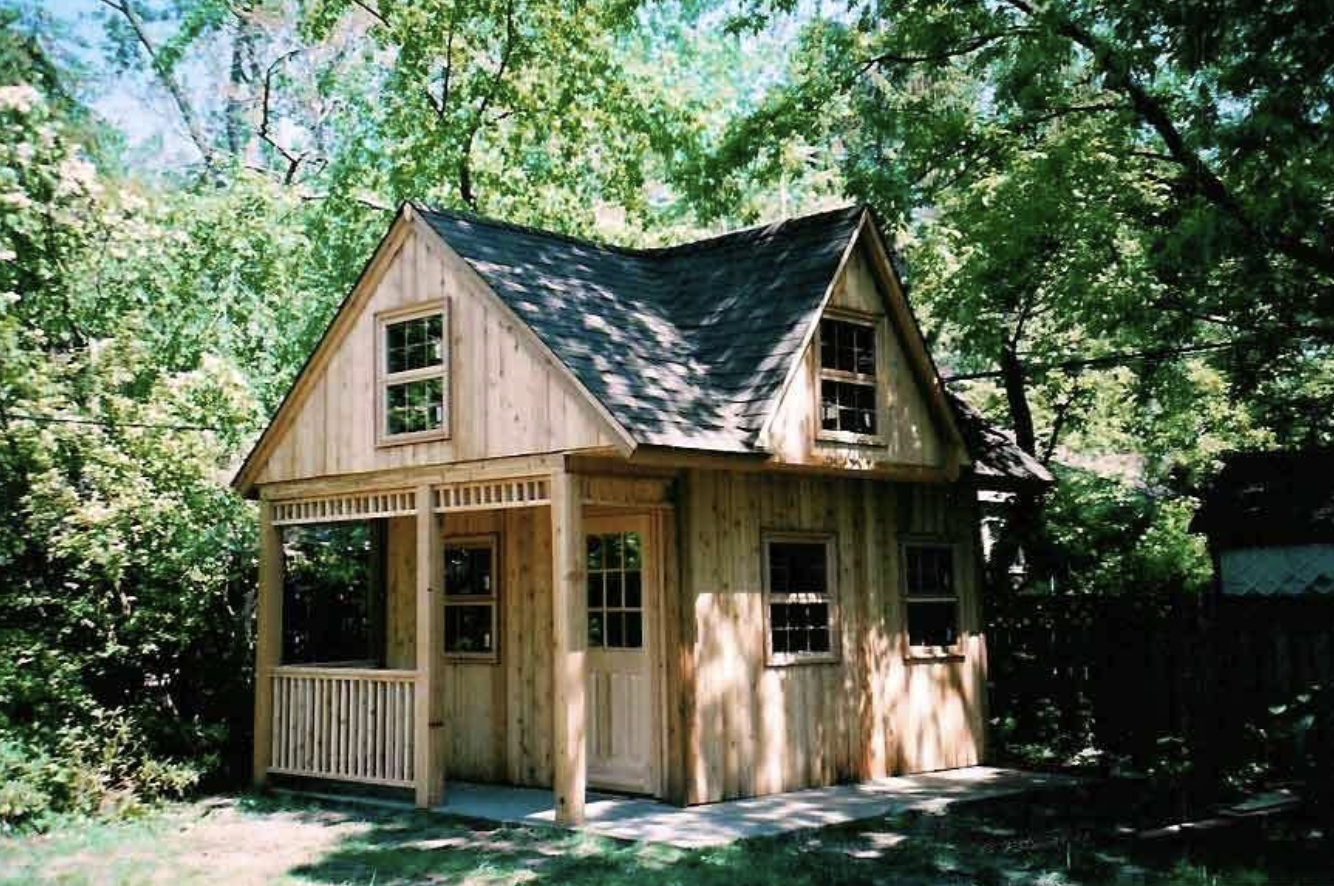 The gable roof, a defining feature, slopes down from the center, its geometry not only adding style with vertical gable ends but also practical headroom for the loft space above. This design makes it easier to frame and finish, the open access to the gable ends simplifying ventilation with roof vents—a detail that speaks to the cabin’s thoughtful construction. The 5/12 pitch ensures stability while offering room to imagine a loft studio or extra storage, the soaring ceiling a canvas for creativity. The cedar porch, with its natural charm, enhances the cabin’s frontier feel, providing shelter on rainy days or a shaded respite during summer heat, its presence turning the 8ft. x 16ft. footprint into a welcoming retreat. This combination of form and function makes the Cheyenne a structure that feels both rooted and ready to evolve.