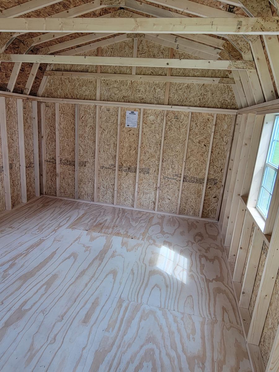 The cabin is a clean, unfinished shell when delivered, which is the majority of buyers’ preference. The open 2×4 walls, exposed rafters, and solid loft with an included ladder offer you total liberty to make your dream cabin. A lot of people who own it complete the whole cabin for $5,000-$10,000 with affordable materials: pine tongue-and-groove from the local lumber yard ($2,500), luxury vinyl plank flooring ($900), an IKEA kitchenette with an apartment-size fridge ($1,800), and a small bath with a shower pan and composting toilet ($2,000). Plus, if you add a $1,200 mini-split, you’ll enjoy a comfortable climate in any season for well under $20,000 in total.