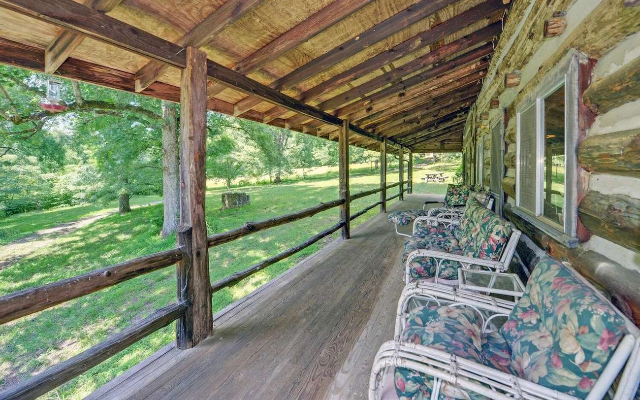 The porch is wide and wraps around the front of the house thus providing the perfect spot for coffee as fog rises from the creek or for an evening fire when the stars are seen reflecting in the water. 12.55-acre lot is a private paradise, 800 feet of a creek with a strong current is the source of the sound of water for the whole day, the woods surrounding the property are waiting for you to take a walk on their trails, and the open meadow is available to you for planting or keeping animals. Large windows and a covered entrance in the cabin make sure that the outdoors are always near. The beauty of the area adds to the charm of the cabin thus making it a place where you feel secluded and at the same time deeply connected with the North Georgia mountains.