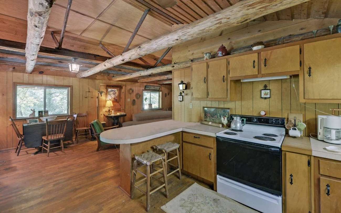A centrally located single full bathroom serves both areas and it is equipped with a tub/shower combo, vanity, and new fixtures that will make morning routines smooth and stress-free. The thoughtful attention of the cabin like having central heating and air for comfort all through the year, the gentle warmth from the wood stove on a cool night, and the ceiling fans for a summer breeze, give the place an effortless vibe where the beauty lies in a perfect blend of rustic charm and modern comforts.