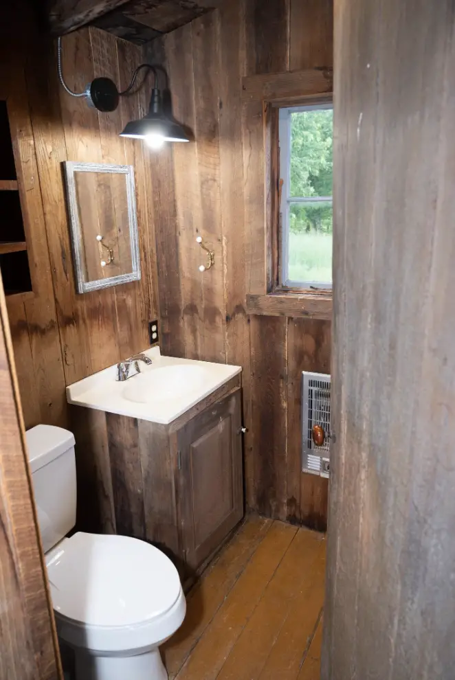 The cabin can comfortably sleep additional guests with an extra futon bed in the main area, thus small families or couples looking for a romantic getaway will find the place totally accommodating. The fully-equipped bathroom is a short walk from the main space, thus easily accessible. Inside the bathroom, you will find modern fixtures that not only bring elegance but also ensure that starting your day remains a stress-free routine.