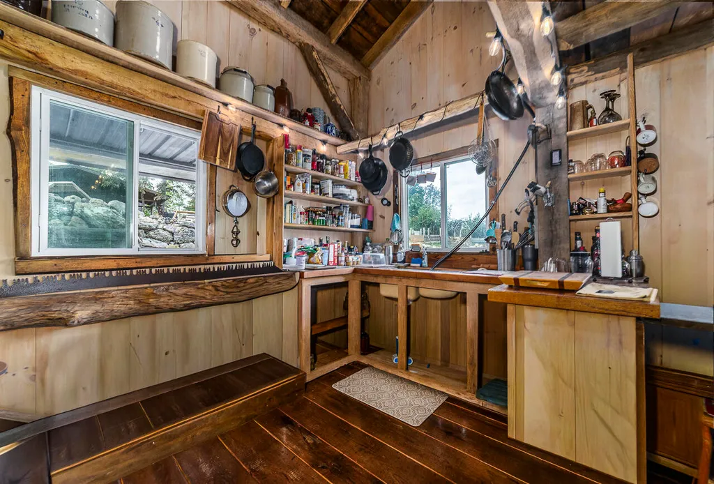 Other such as the woodshed, root cellar, open-air kitchen area, and detached art studio points to the property’s versatility, while two fire pits serve as places to gather and enjoy the stars.