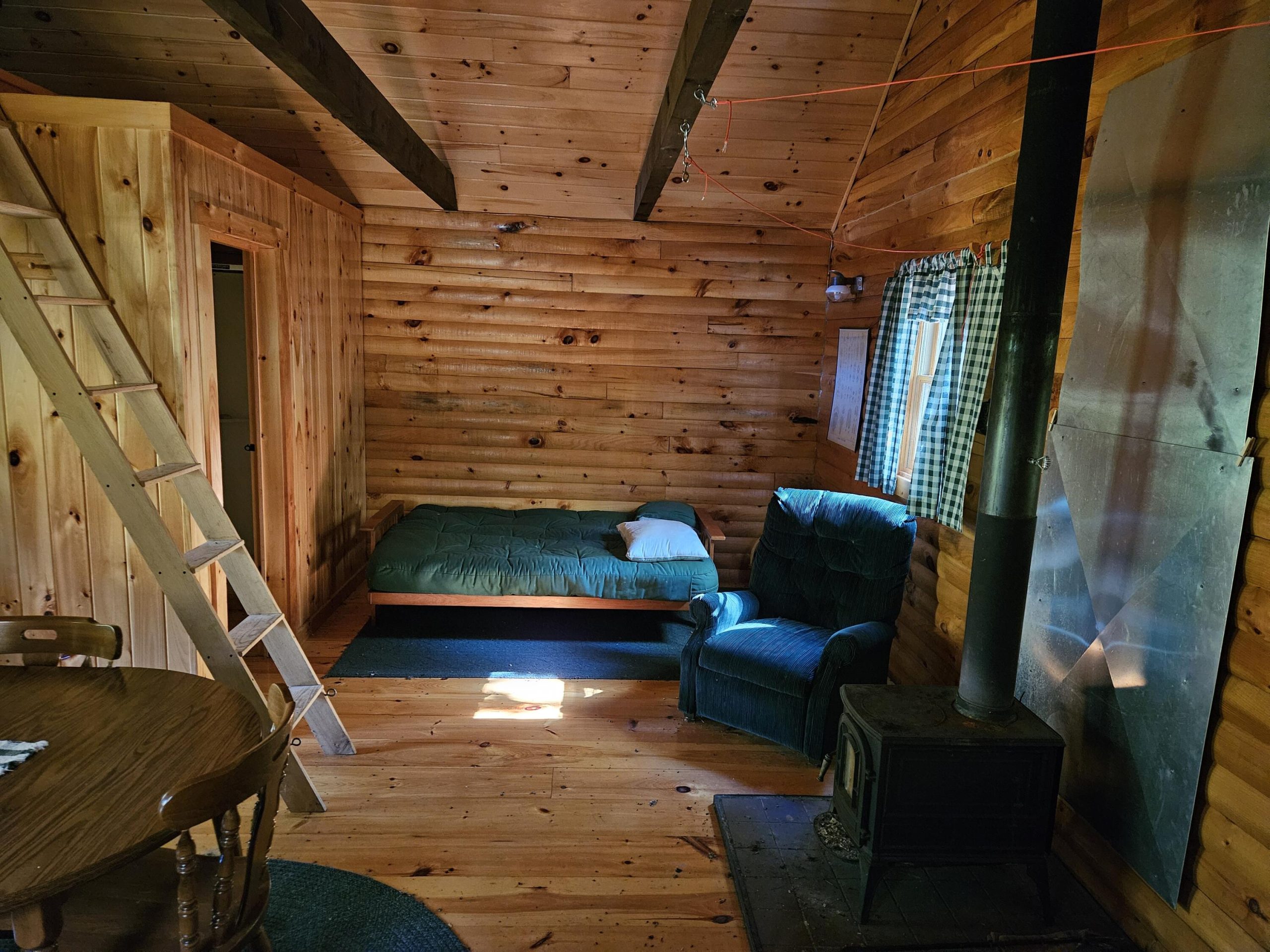 | Interior | Wood stove, open layout |