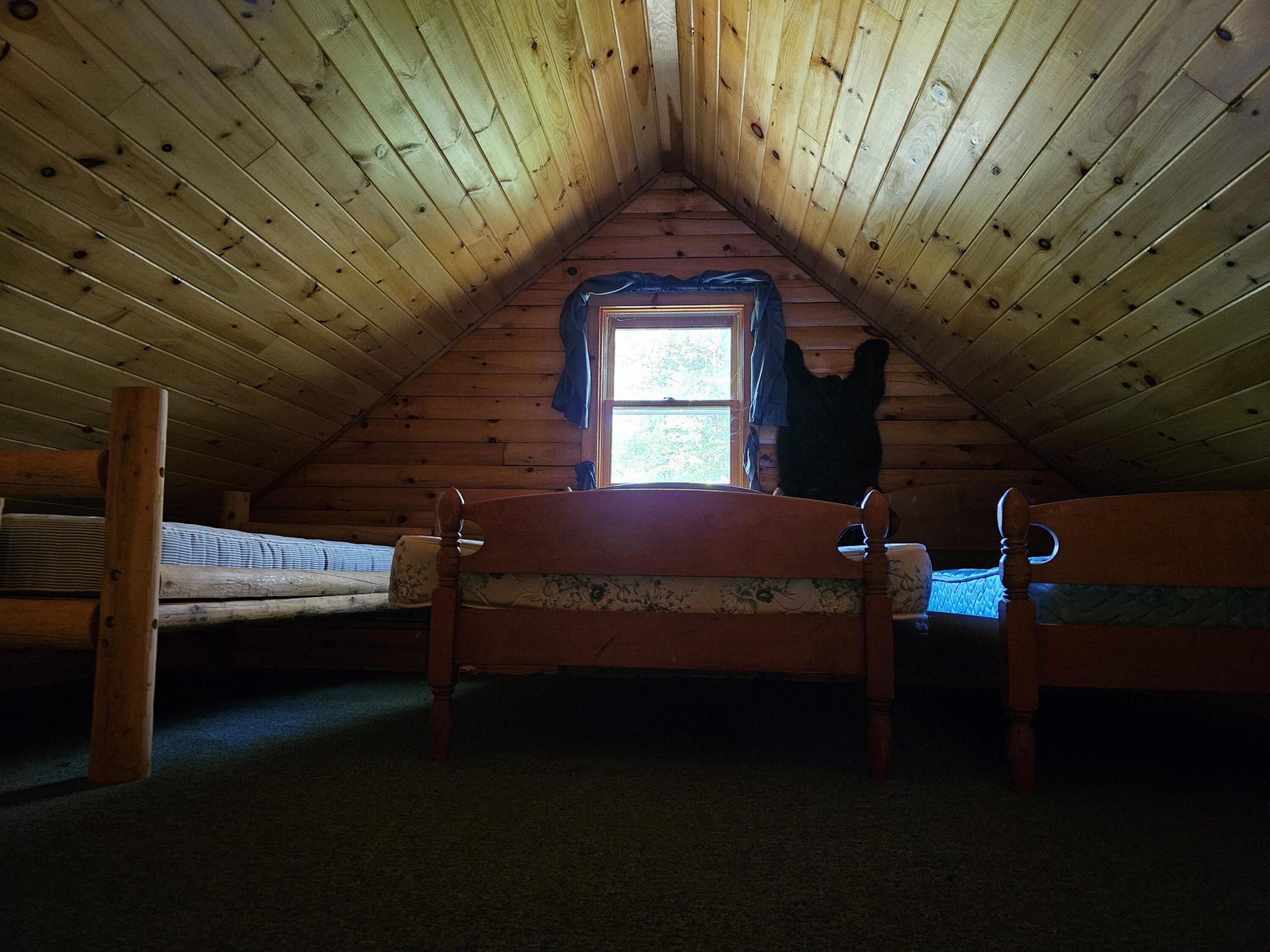 Your personal haven is the sleeping loft where it is easy to drift off and have a night’s deep sleep surrounded by calmness with the soft feather bed. The loft has the feeling of a small secret place up high, where you are close to nature and yet hidden. The wooden walls and silence are making the cabin a perfect place to rest and recharge after a long day of walking and exploring the woods and property.