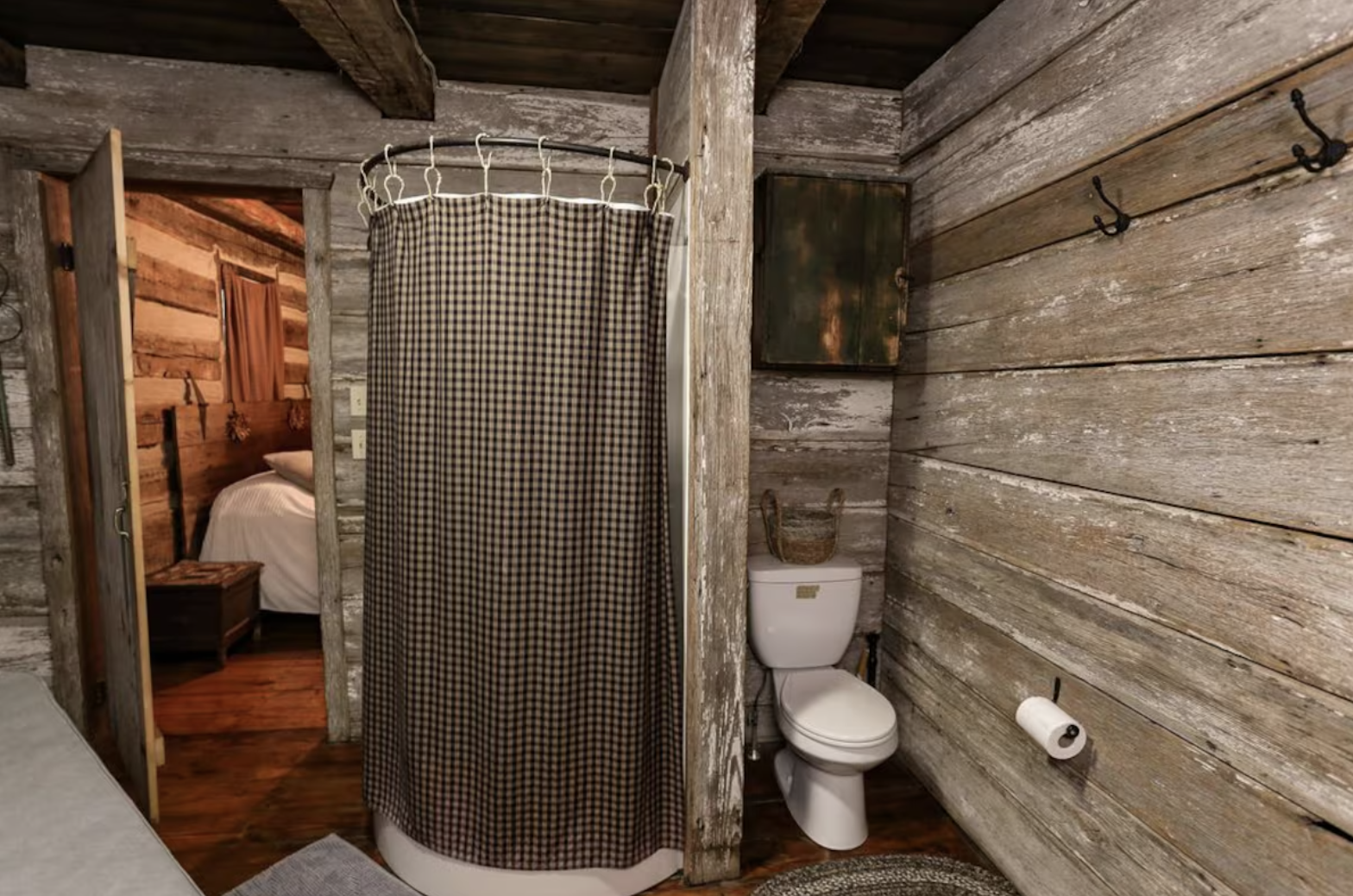 Bathroom with full facilities is tastefully decorated and rather functional with nice water faucets, shower with good water pressure, and well-lit atmosphere that makes morning routine easier. Climate control, ceiling fans, nice lighting, comfortable beds, beautiful steps and outdoor lights are the cabin thoughtful touches. For example, having an efficient air condition unit gives no feeling of suffocation even when it is hot outside; a ceiling fan is suitable for summer nights when you feel sleepy and get breathless inside the room. In the end, the whole cabin feels so easy and the most important thing is that the beauty lies in the perfect combination of historic charm matched with modern comfort.