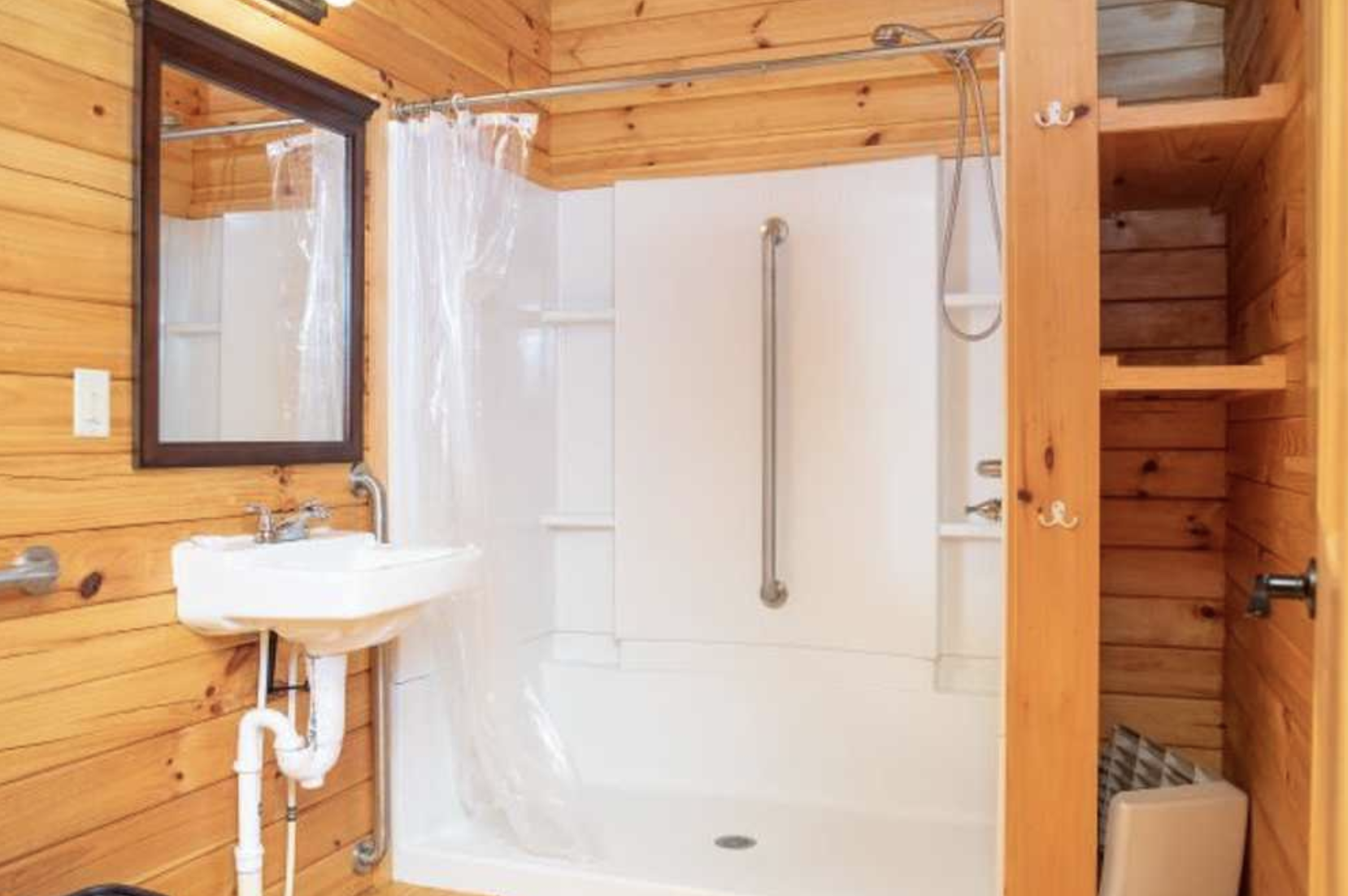 Hence, the bathroom is very well maintained. The simple bathroom fixture and the strong water pressure make up a good combination that enables one to have their morning fresh and simply without any hassle. It is a place with a concise and efficient layout designed to meet the needs of the park model cabin’s visitors comfortably and at the same time, the kind of stylish modern elements which blend nicely with the rustic environment can be found around the corner.