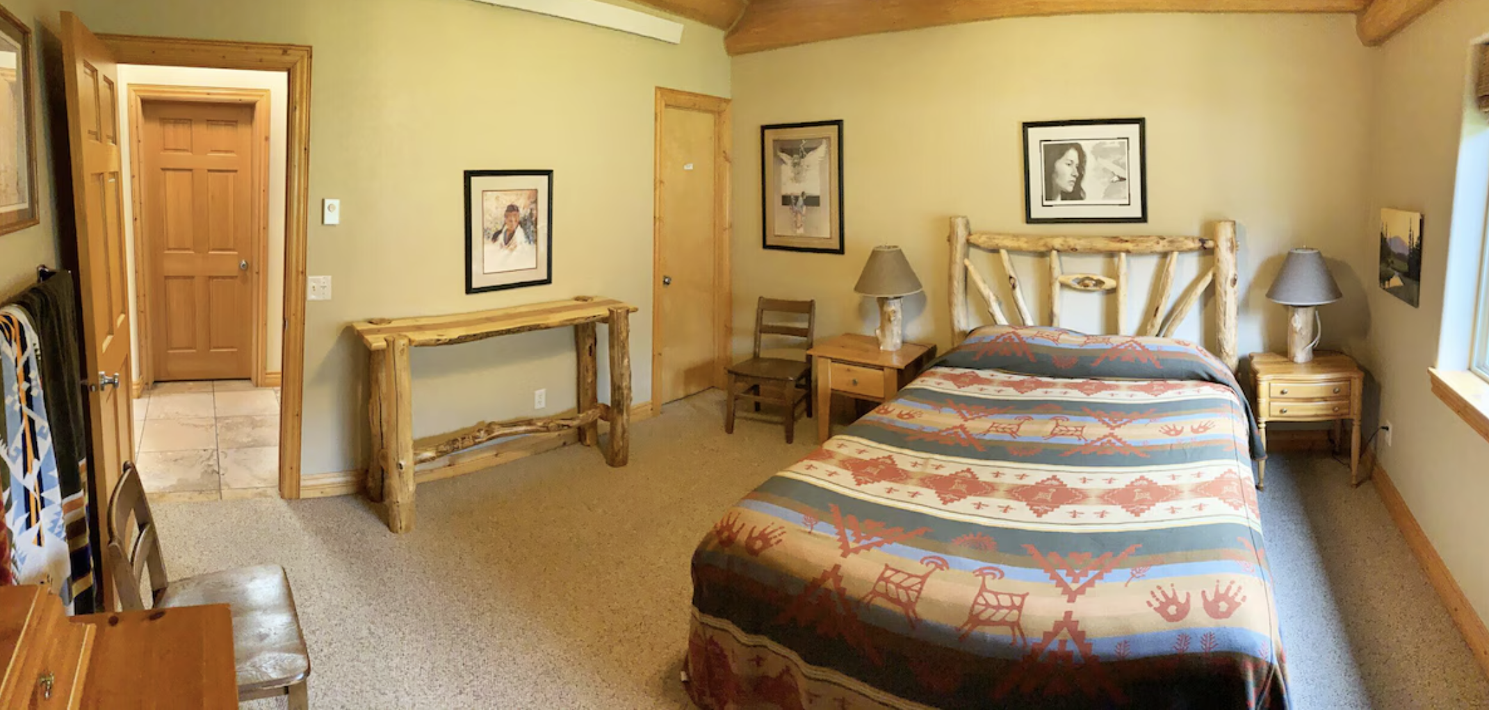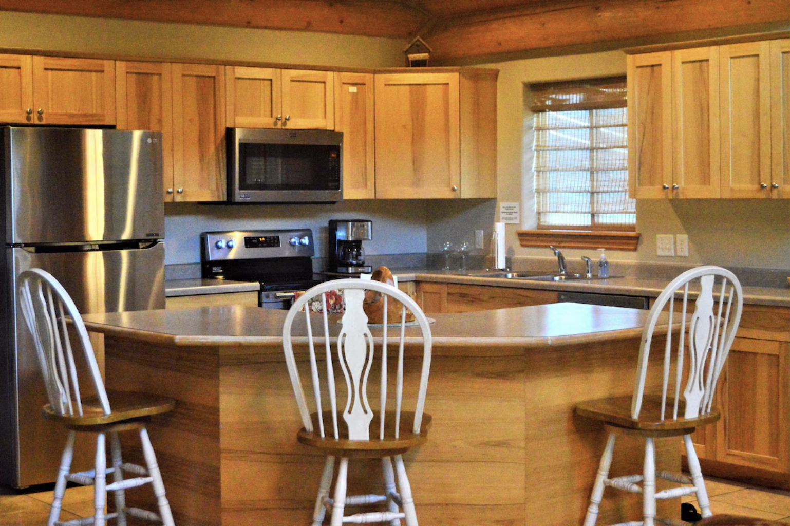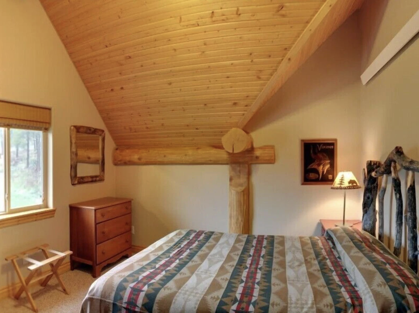 Step inside, and the great room opens like a sigh of relief, its high ceilings and wood-paneled walls bathed in the glow of a stone fireplace. The space hums with a lived-in feel, the dining table—set for eight—promising hearty meals and laughter, while the kitchen island seats five, its surface a gathering point for stories. Air conditioning keeps the summer heat at bay, while free WiFi links you to the world, a gentle nod to modern life amid the rustic. The windows frame the meadow’s expanse, turning every glance into a meditation, the beauty here in the way the room holds both solitude and togetherness, a hearth where the wild heart beats softly.