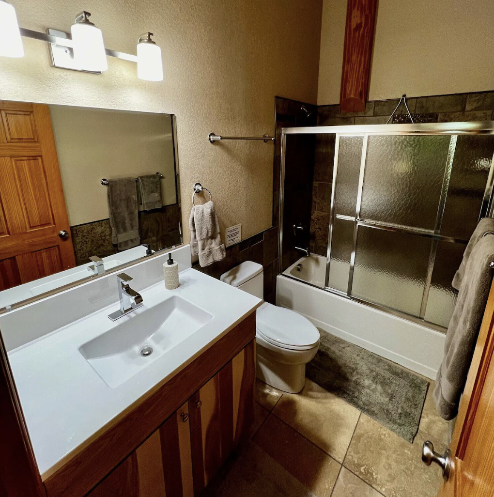 The three bedrooms offer quiet nooks, each a retreat from the day’s explorations. The master, with its generous bed, wraps you in restful silence, the windows letting in the meadow’s morning song. The second and third rooms, with their twin or full beds, adapt to guests or children, their wood walls a warm embrace. The two bathrooms, with showers and vanities, provide daily comfort, the steam rising to soften the air. This layout crafts a home that feels personal yet open, its beauty in the balance of privacy and shared space.