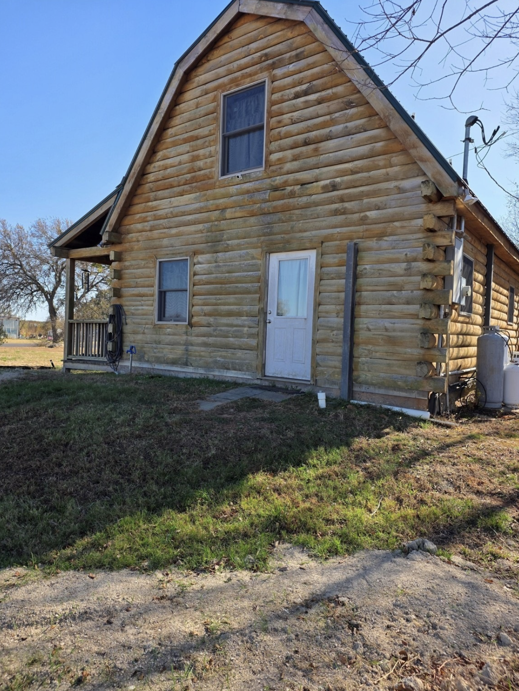 Located on a highly visible area of State Highway 121 in Bonham, Texas, this charming rustic log cabin is the embodiment of an authentic cabin experience along with an excellent accessibility feature. Constructed with the timeless log building technique and wood color throughout, the double level house with 1120 square feet is situated on almost 1 acre corner lot, which results in a combined effect of a comfy residential shelter and a place with a great potential for development.