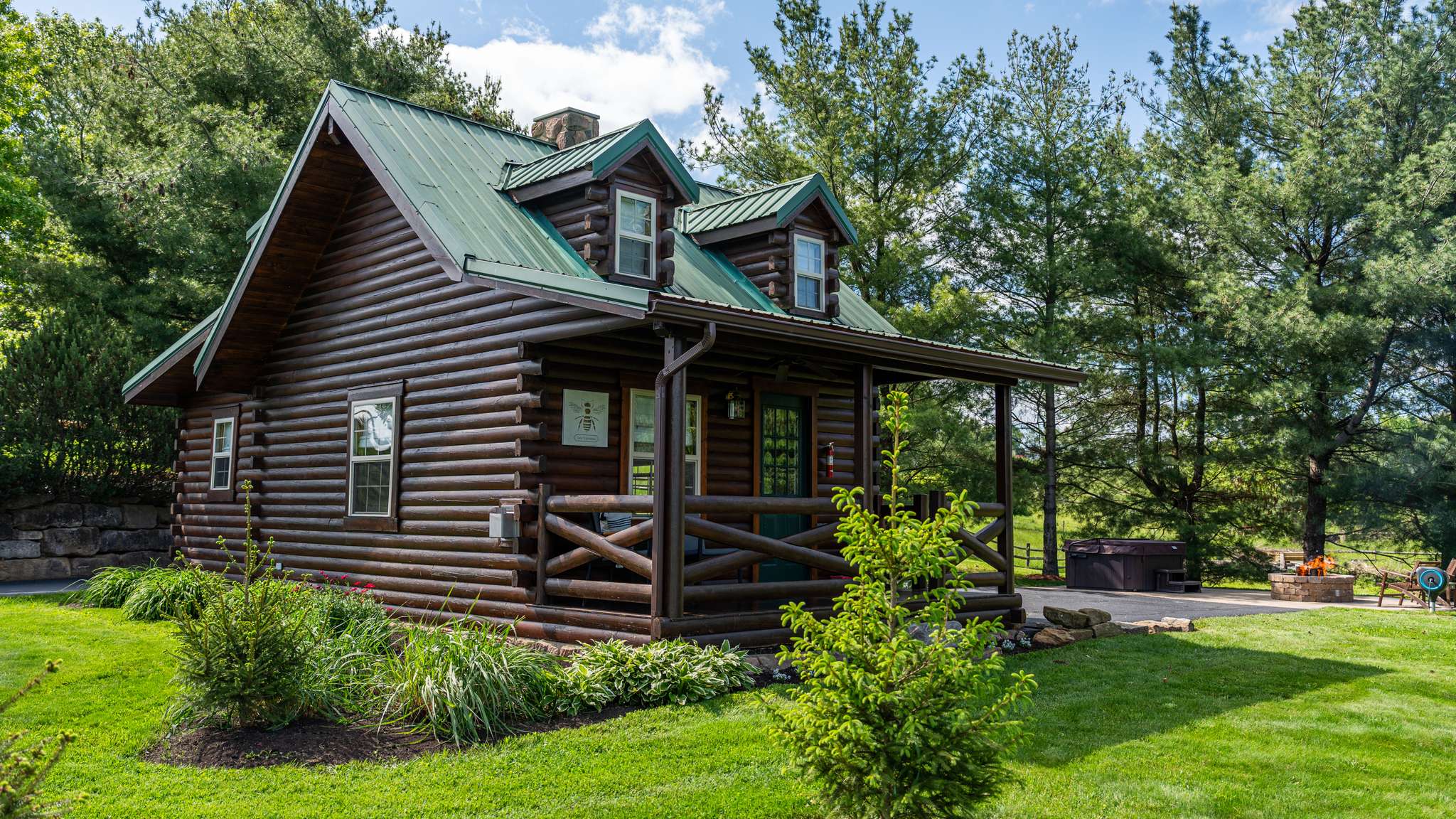 The cabin with its typical architecture and natural wooden walls visually reminds one of a place he has always known but this time it is in a different way. Besides, a broad front porch with a simple railing and Adirondack chairs invites one to stay longer, while the back patio with a private hot tub and fire pit made from stones looks out on the fields and tree lines too far to be reached.