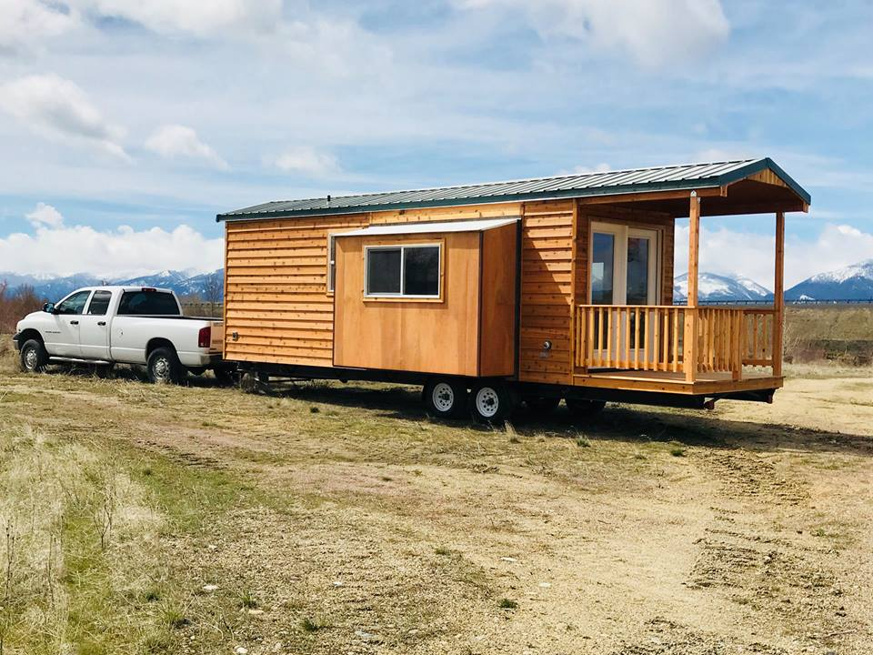 The 8 Wide cabin’s exterior design is an example of how aesthetics can go hand in hand with functionality. Its 8’6″ width and 13’6″ height give the cabin a compact, low-profile look, which is also the reason why it’s quite easy to tow. However, with the push-out feature, the cabin expands significantly. The cedar siding, being a natural product with vertical grain and oil, lasts longer as it not only protects the inside from the weather but also adds a bit of nature’s comfort. The double-paned low-E windows are designed to open slightly for wiping the outer surface, while the wood trim is painted in a classy and neat finish that beautifully complements the door and window frames. The roof is sloped to let water and snow easily slide down.