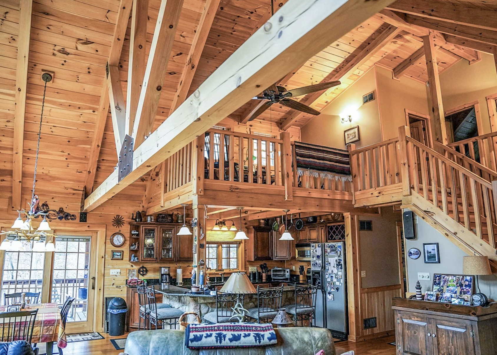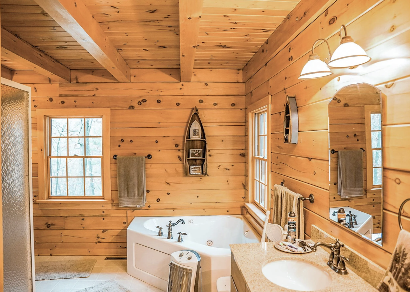 There are also two more bedrooms each of which has large closets and windows that let in the light, and both share a full bath fitted with double sinks and a tub/shower combo, furthermore, the rooms are big enough to accommodate queen beds and dressers. The house’s interior walls are of logs and have been varnished to bring out the natural grain, thus they serve as a warm ‘jacket’, whereas the wooden floors and tiles provide the house with durability as well as style.