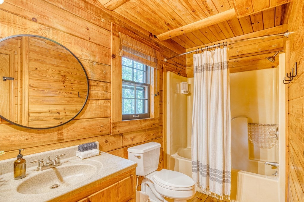 Moreover, the cabin’s thoughtful additions such as central heating and air conditioning for comfort throughout the year, the wood stove for providing gentle warmth on cold nights, and ceiling fans for summer breezes make the cabin seem like a place where the rustic soul is beautifully balanced with the modern ease and where everything seems to happen effortlessly.