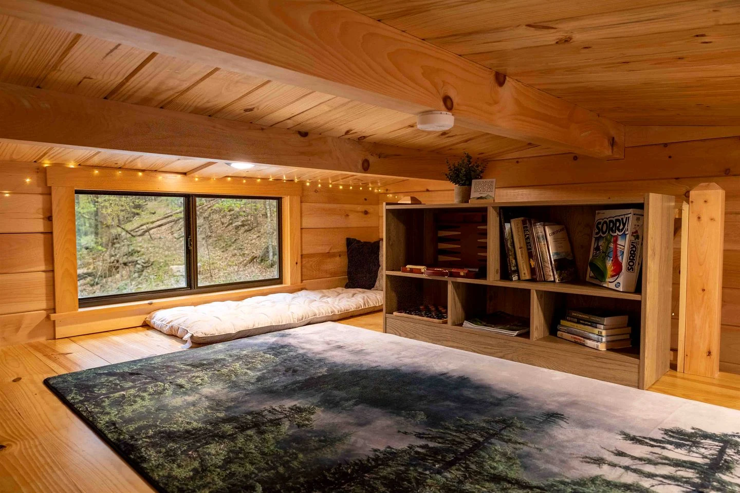 The heating keeps the space warm in winter, the air conditioning offering relief in summer, while the hot tub and fire pit extend the comfort outdoors. The bathroom’s shower provides a daily renewal, the living area’s recliner loveseat a spot for quiet evenings, the loft a playful escape for children or a history lover perusing the logging books. This harmony of indoor coziness and outdoor splendor creates a retreat that feels both luxurious and rooted in the land.