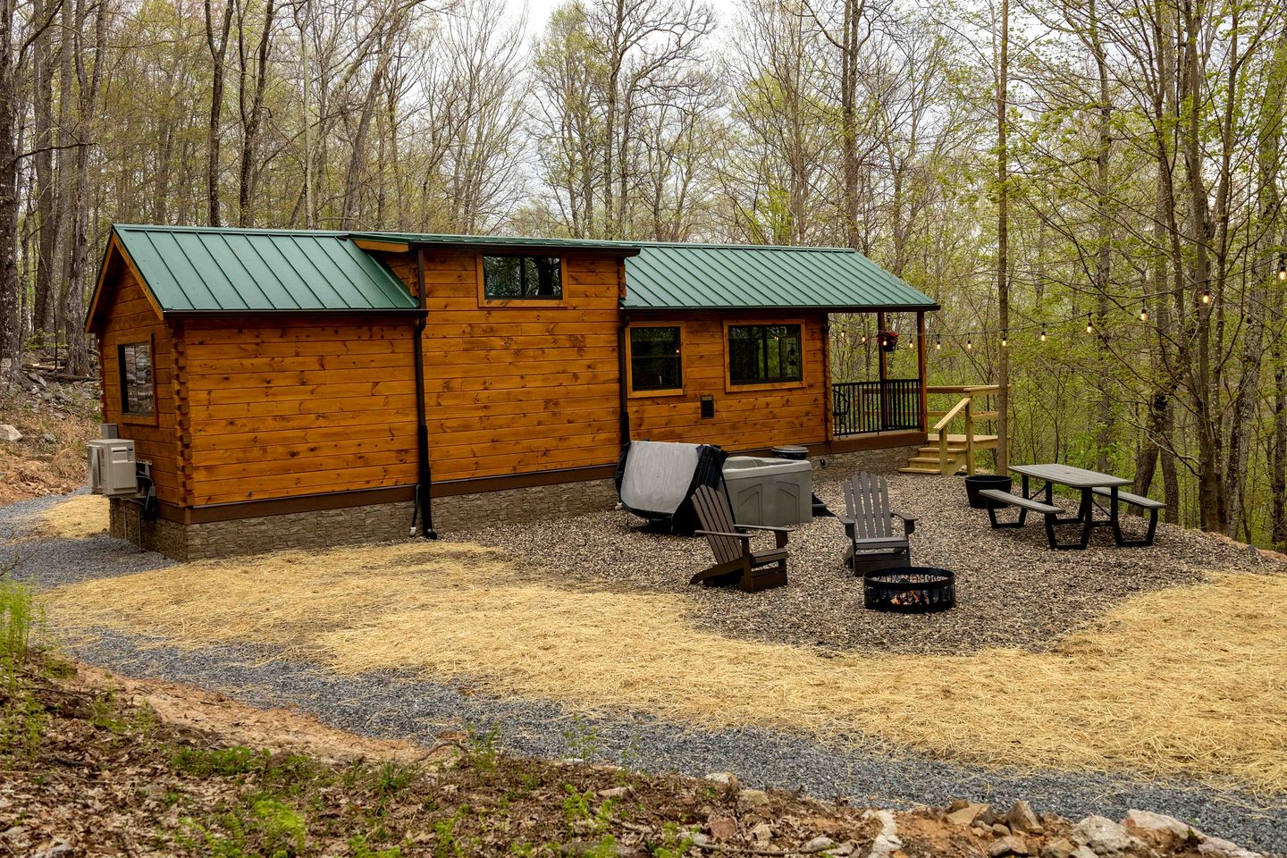 The outdoor features elevate the cabin’s beauty, the four-person hot tub a luxurious haven where the steam rises against the cool mountain air, the jets easing away the day’s stiffness. The fire pit, with its circle of stones, becomes a nightly ritual spot, the flames dancing as stories are shared or marshmallows roasted, the picnic table nearby offering a place to enjoy the warmth. The old railroad bed, visible as an unused path, adds a layer of historical intrigue, the railroad spike found years ago a quiet testament to the land’s past. This outdoor space, with its hot tub and fire pit, turns the cabin into a sanctuary where nature and relaxation intertwine.