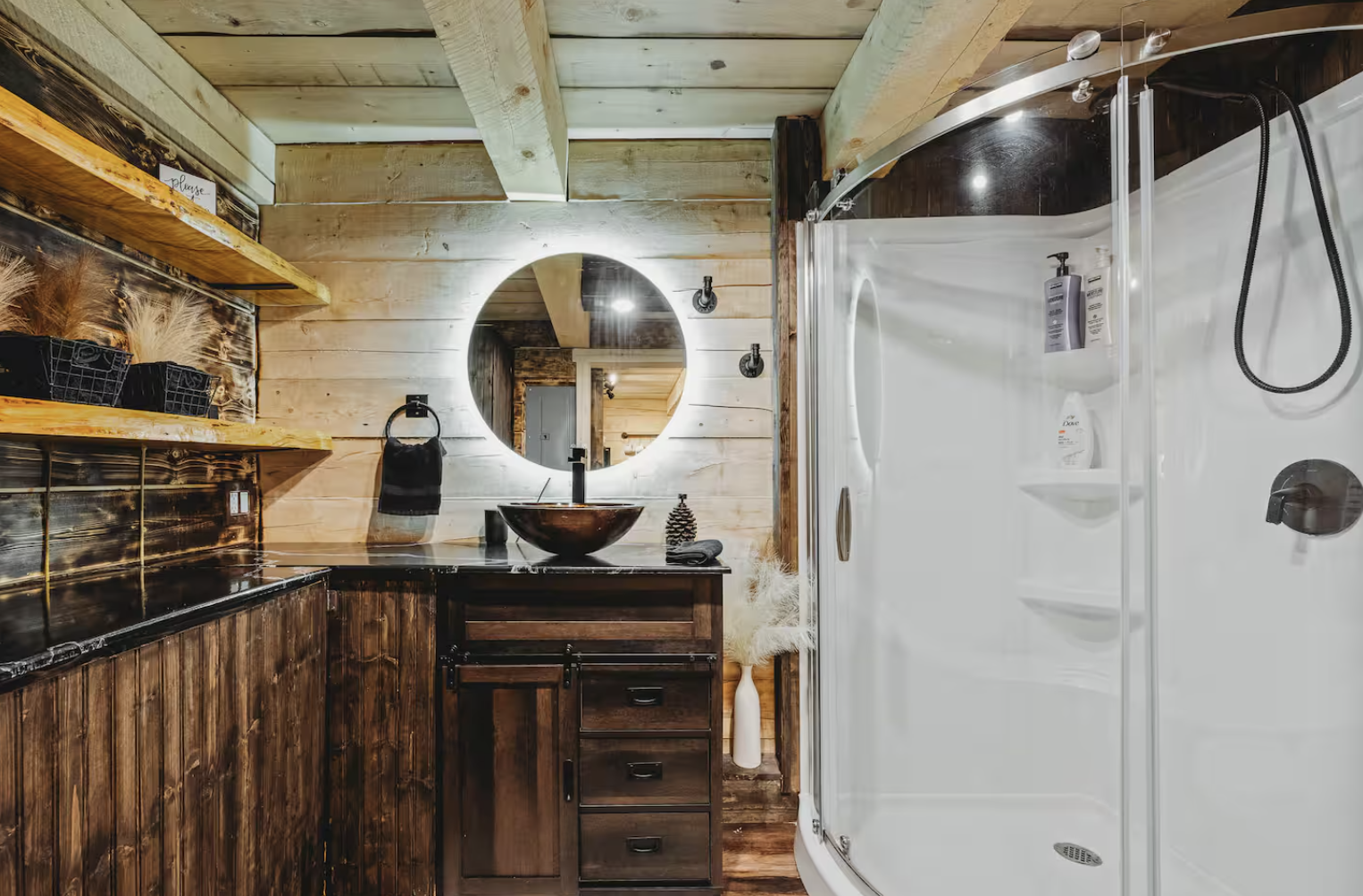 The loft bath with its basics such as a hairdryer, cleaning articles, Kirkland shampoo, and simple soaps is a wise move, it also has hot water for a quick rinse after a dusty and muddy trail. In contrast, the ground floor second bedroom is an offering of conventional coziness, and has space for a full or queen bed with linens being provided, all coming to a shared bathroom that is clean and functional and comes with toilet paper, towels, and a first aid kit for any minor scrapes from the trail. Moreover, the cabin’s considerate features—like the pack ‘n play for toddlers or the books and board games for rainy days—turn it into a safe home for a family, where every detail is thoughtfully planned, and every corner becomes a little more lovely through its simplicity.