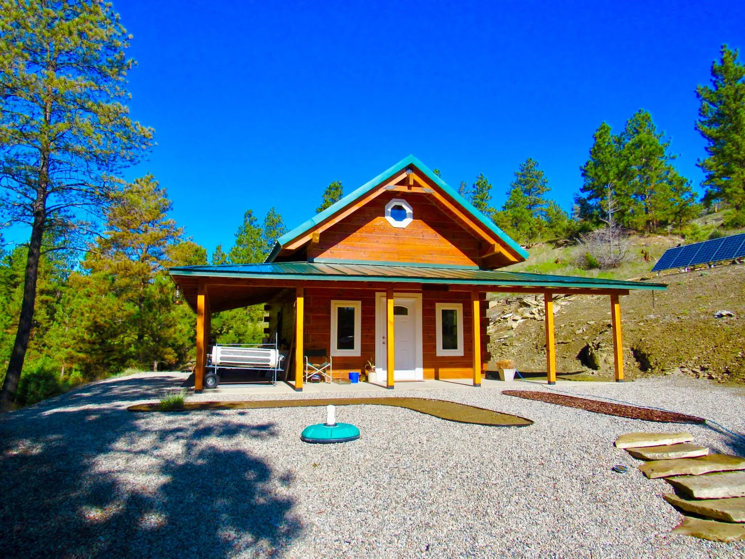 The loft, a wonderful space for visitors or children, has twin bunks with space for a dresser, the area being cozy and useful for a family trip. The second bathroom, a half-bath on the main floor, is equipped with a vanity and toilet and is meant for guests, while the full bath upstairs has a tub/shower combo. The cabin’s intentional features—such as in-floor radiant heat for comfort all year round, solar panels for off-grid power, and ceiling fans for summer breezes—give the impression of a very simple space where the charm is the combination of the rugged side of the soul and the modern conveniences side.