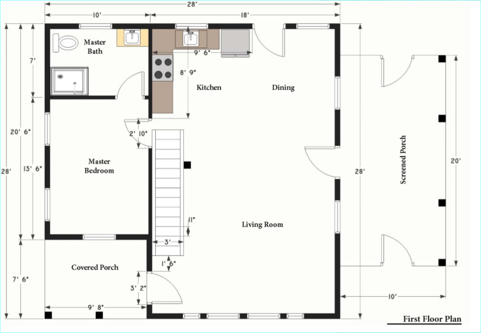 | Size | 1,100 sq ft (28′ x 28′) |