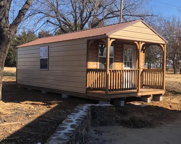Mountain retreats find a perfect match in the 14×28 at $13,705 or 16×32 at $16,500, the larger sizes offering room for a loft or extra storage, the porch a shaded base for hiking gear, the wave panel walls holding firm against the wind. The 9-light door lets in the crisp air, the vinyl windows keeping the warmth in, the insulation a buffer for high-altitude chills. Finishing on a budget, you could add drywall for $1,000, basic cabinets for $1,500, and lighting for $500, turning the shell into a snug haven with a wood stove for nights by the fire. It’s versatile for a hunter’s camp or a writer’s escape, the steel frame a durable choice for remote sites, the beauty in its ability to stand alone, a mountain companion that weathers the storms.