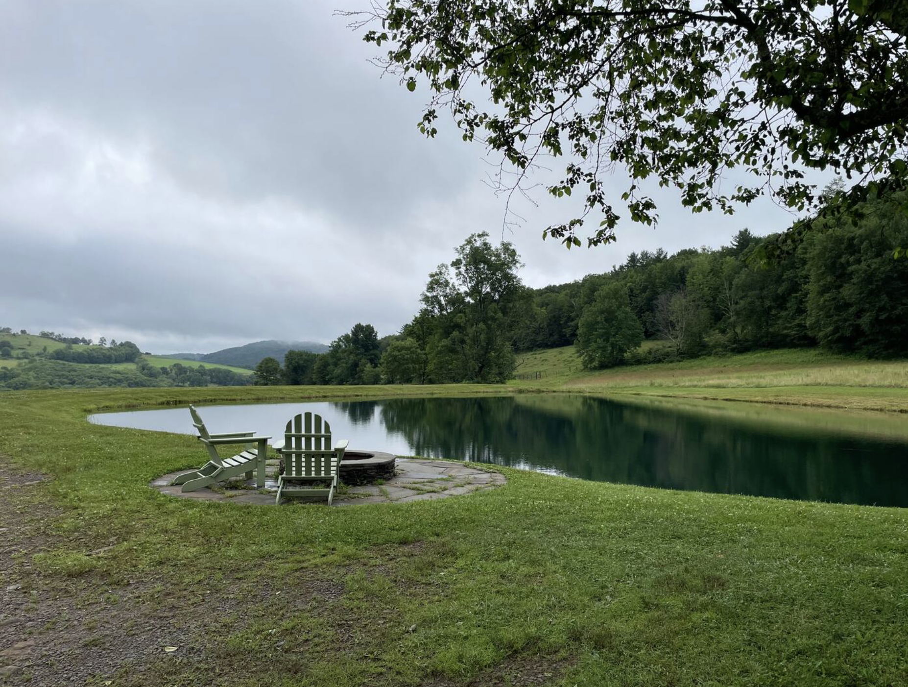 Outdoor living areas truly make the whole experience count. Upstairs porch is a second living room good with the door open and for alfresco eating, reading, or just listening to the farm and forest sounds. For evening fires, there is a stone fire pit where guests can sit and chat, and a small private pond for swimming, canoeing, etc, dock-side fishing as well as nature walks over the grounds that surround by farm and forest. This cabin on a working farm is also a lifestyle authenticator and guests can delight in the past and present of the same place and at the same time totally be alone.