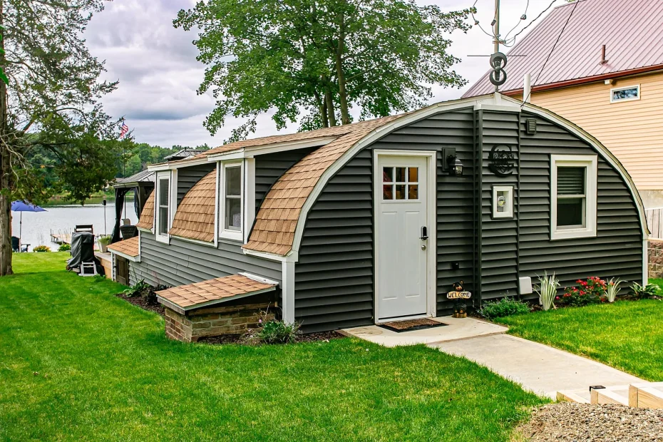 In the gentle folds of Michigan’s countryside, where the air hums with the quiet pulse… 597 sqft Quonset Hut That’s Larger Than It Looks