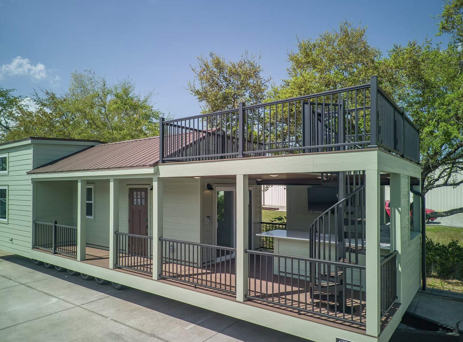 | Style | Elevated Park Model Cabin with Rooftop Deck |