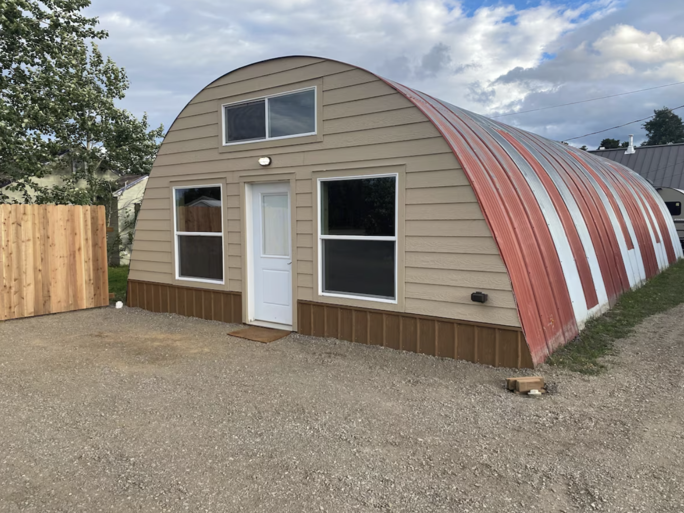 Right in the middle of East Glacier Park Village, Montana, this charming Quonset hut for rent is a distinctive combination of the comforts of modern living and an architectural masterpiece. The Quonset hut is a comfortable, cozy haven with its curved metal exterior giving a striking appearance that is at once modern and very much in harmony with a tranquil vacation spot. With its location offering a quiet town atmosphere and the attractions nearby it is quite convenient, the Quonset hut is a perfect choice if you wish to have a base for your exploration of Glacier National Park and its vicinity.