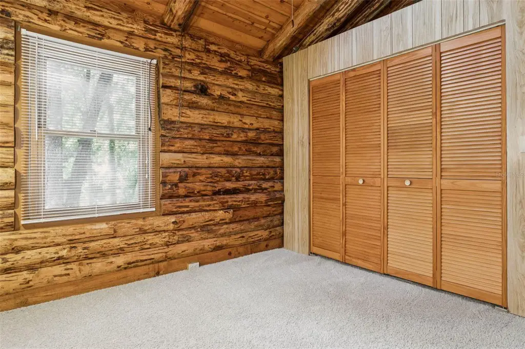 Located at the end of a silent lane in Brooksville, Florida, the log cabin at 16204 Friendly Road is a picturesque getaway that harmoniously combines the rough appeal of the woods with the peace of the outdoors. This 864 square foot, 2-bedroom, 1-bathroom house, constructed in 1982 and available for sale at $305,000, is on a vast 3-acre lot next to Spring Lake Prairie, a 42-acre seasonal freshwater lake. Kept in perfect condition by its owner who has had it for a long time, this single-story cabin provides you with vintage quality, high ceilings, and a large screened porch that lets you breathe in the sights and sounds of the adjacent wild. It is a very quiet place that can be used as a first home or a second-home vacation.