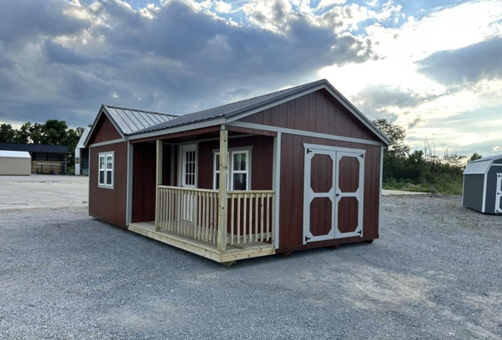 You can find this cabin listed on Kingdom Barns. For further information, options for customization, and other choices, please visit the listing: Kingdom Barns – Cabin with Side Porch