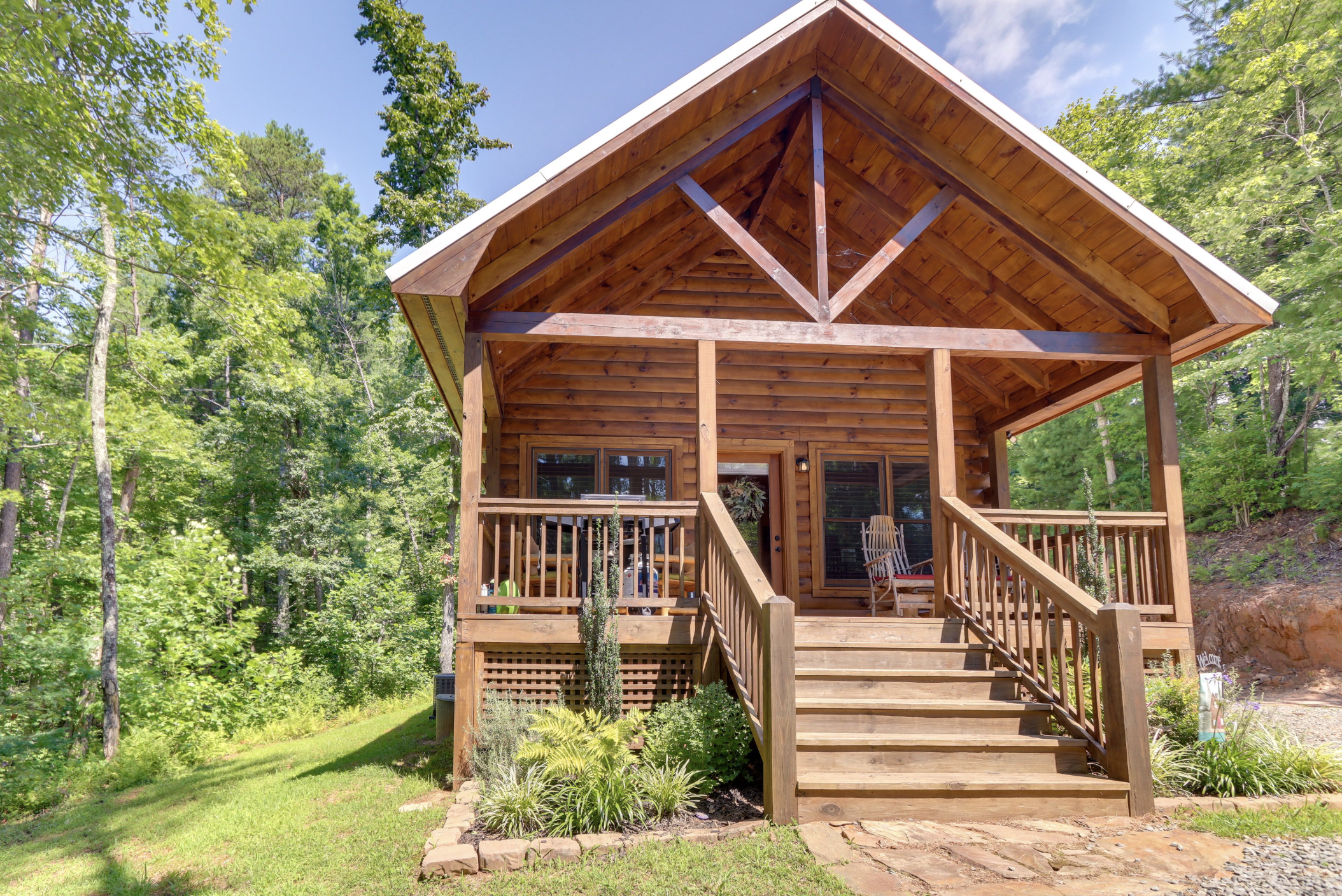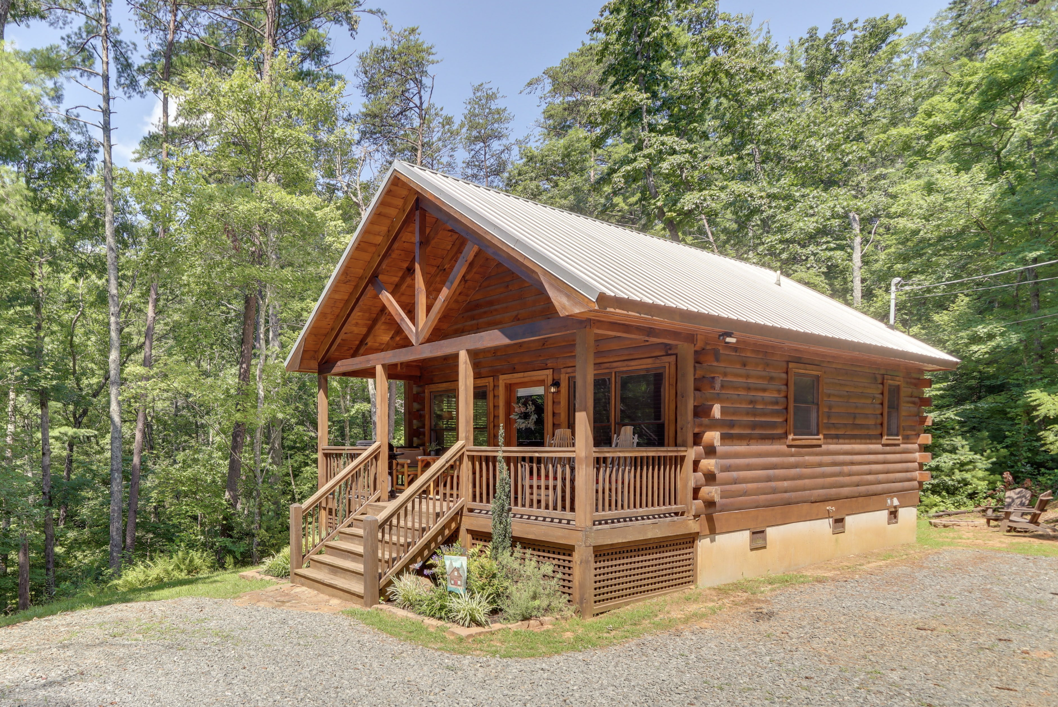 This cabin is a perfect fit for its surroundings as it sits quietly, nestled in a private spot that brings peace of mind and relaxation.