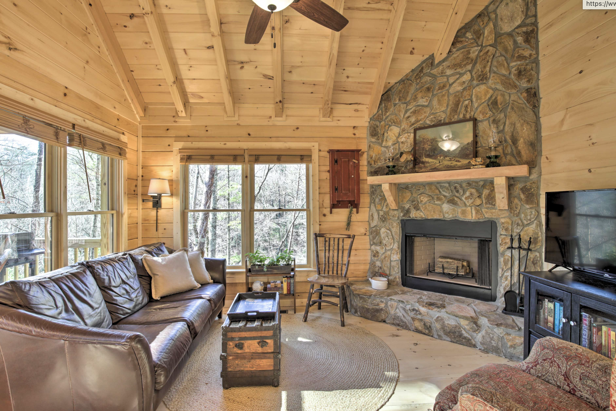 Nestled in the picturesque mountains of Cherry Log, Georgia which is the apple capital of the state this charming log cabin makes an ideal romantic spot for nature-loving couples looking to escape the hustle and bustle of daily life. The cabin, warmed by the glow of the timber, is a timeless rustic beauty that makes you feel like you are in a place that is truly authentic, yet it is perfect for a private and romantic weekend. The cabin is adjacent to the vast Chattahoochee National Forest, which gives you a perfect reason to get some fresh air, enjoy the beauty of nature and listen to the soothing sounds of the wilderness of Georgia.