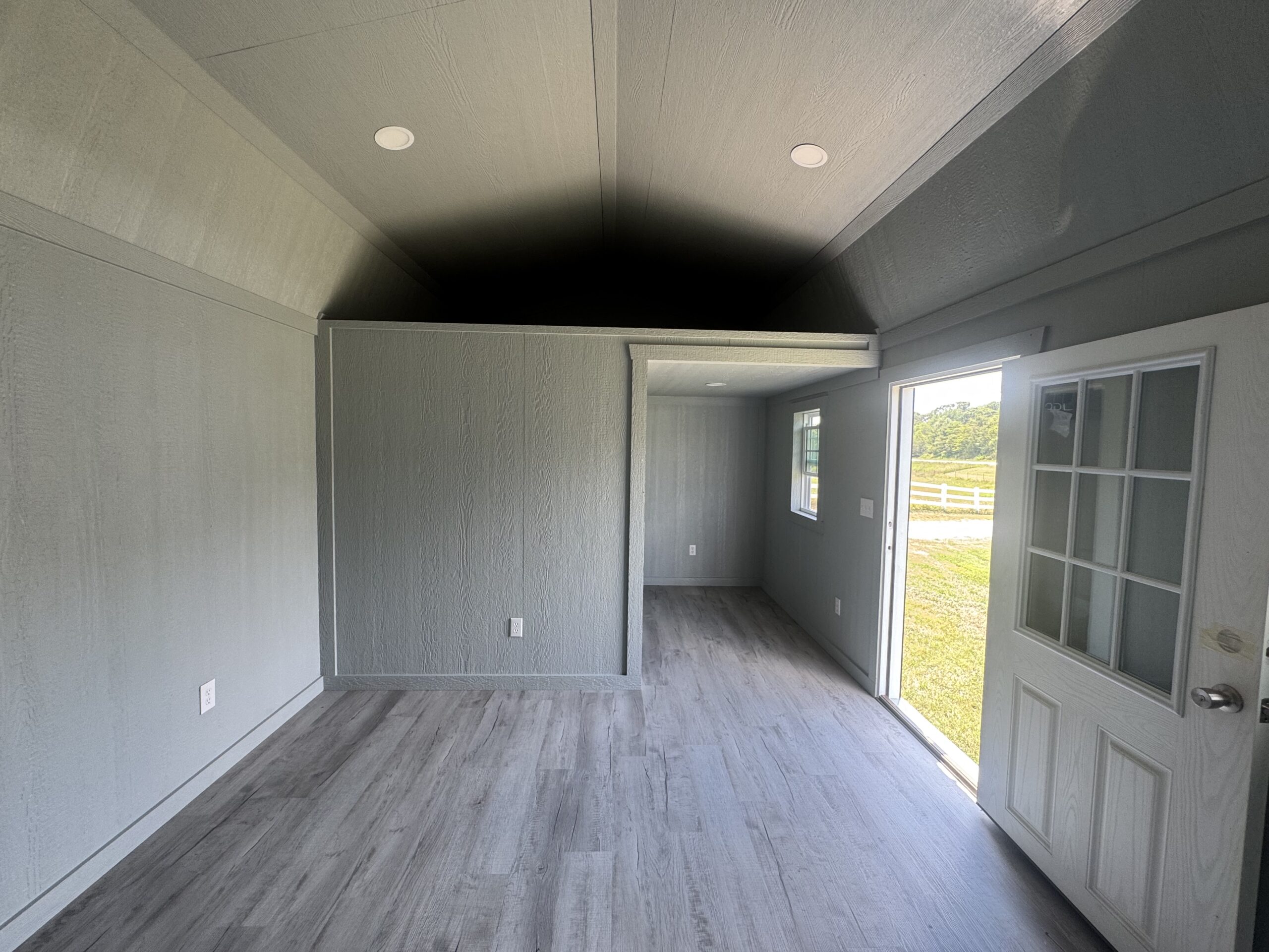 Moreover, the Premier Lofted cabin has a 240-square-foot interior space that is unfinished and thus, a complete blank tapestry for you to paint with your style, the bare walls and ceiling providing the infinite possibility of a space that suits your personality—from the coziest of pine wood to the classy drywall, or even both for a hybrid style. There is an open and efficient layout in the room, with the possibility of a living area extending into a kitchenette, the 12×20 size giving enough space for a couch, a small dining table, and a few kitchen appliances but not making the room look cramped.