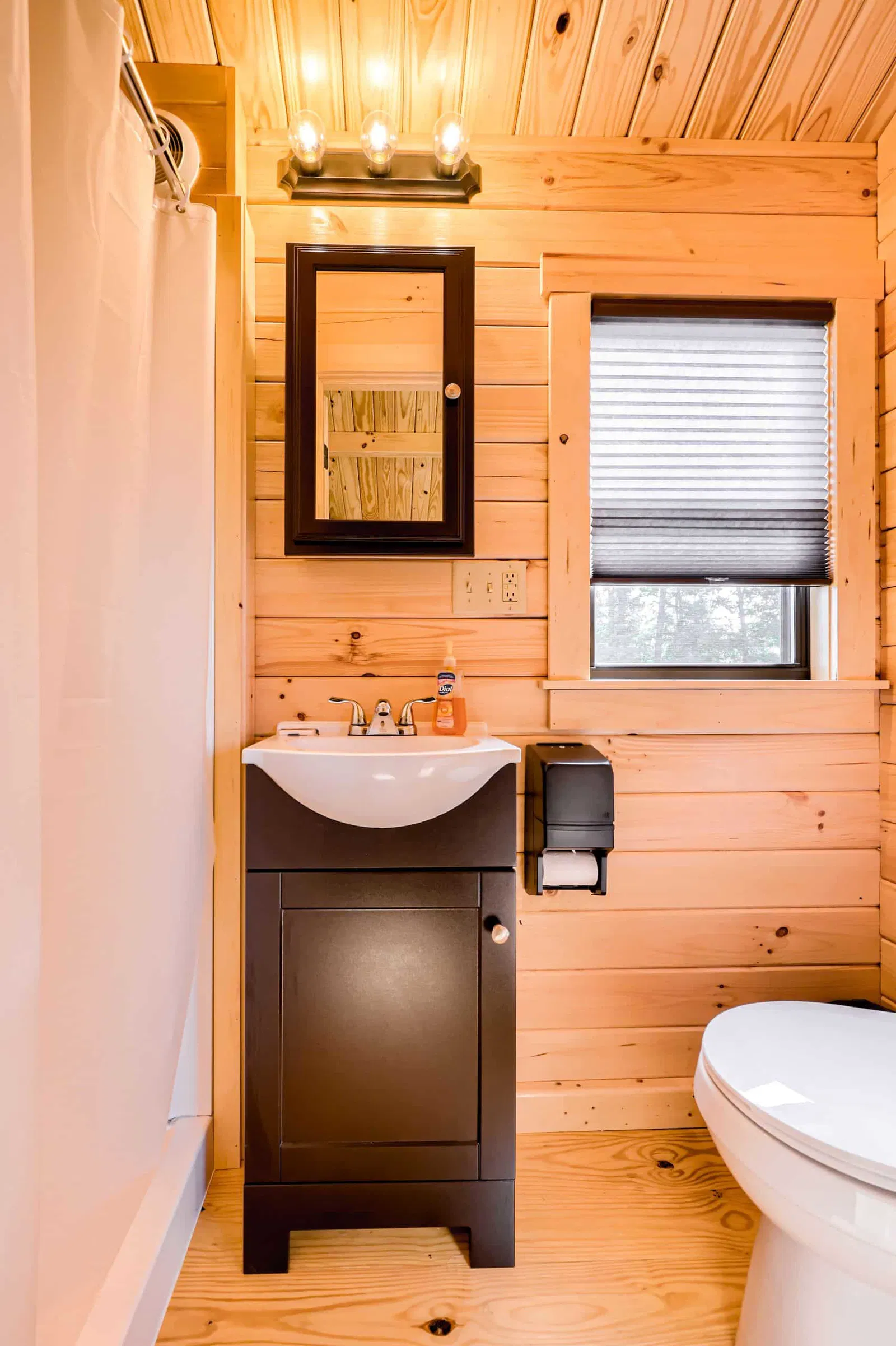 The bathroom tends to daily needs with a steady hand, the porch ushers in the outside world, the layout a stage for memories—be it a family singalong or a solo sunset watch. The beauty lies in its unassuming grace, a park model that feels like a home you’ve known forever. For pricing, customizations, or more questions, reach out to the builder, Lancaster Log Cabins, to weave your own story into its walls.