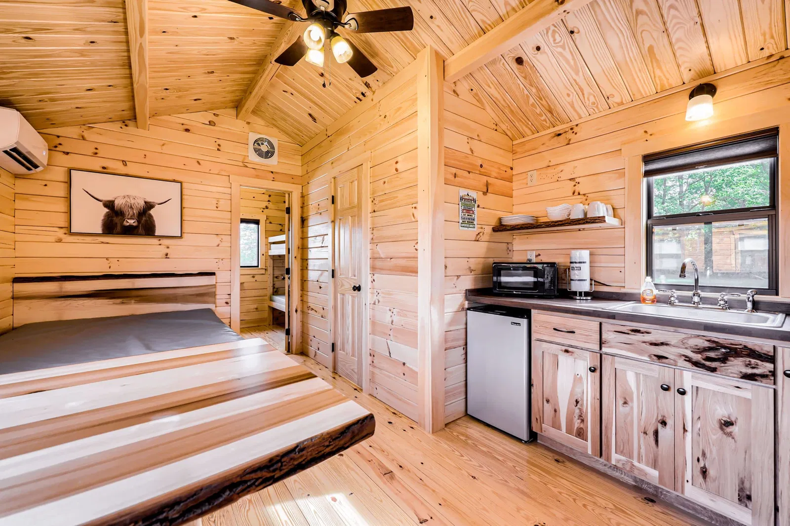 The 30-foot length and 12-foot-10-inch width feel like a perfect fit, the porch adding a breezy 96 square feet of living space, the insulation holding the warmth through winter or coolness in summer. The charm sneaks up in the small things—the porch’s shade for an afternoon nap, the bunk beds’ giggles, the kitchenette’s simplicity for a quick bite. It’s a cabin that feels alive, its compact interior a testament to design that wraps you in comfort without clutter.