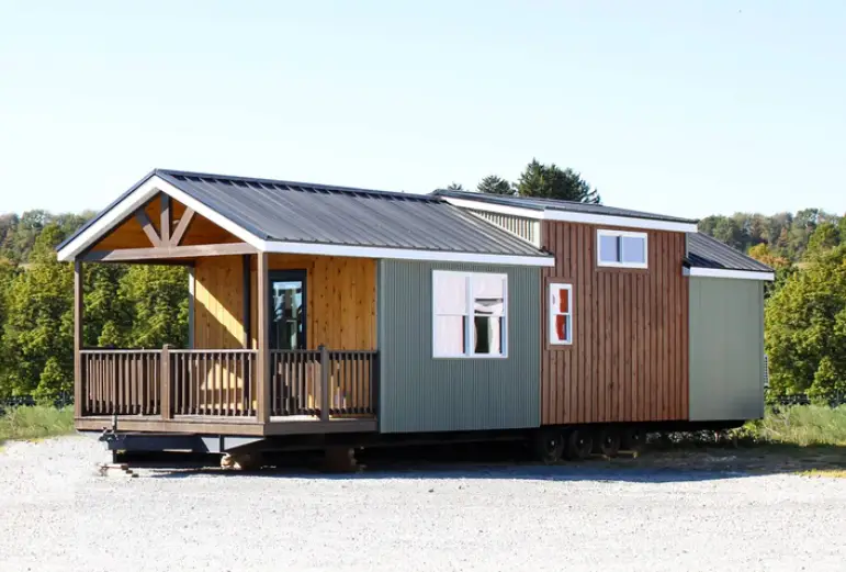 Park model homes have a subtle way of capturing the essence of a simpler life, where the boundaries between indoor comfort and outdoor serenity dissolve into a seamless flow. The Bearington park model, designed by Amish Built Cabins, offers a beautiful illustration of this balance, its 400 square feet of living space creating a retreat that feels both compact and generous. Measuring 12’8″ x 42’6″, this model includes an 8-foot porch with railings, making it a perfect spot for quiet mornings or reflective evenings. Priced at $115,000, it arrives with a custom 4-axle steel trailer and detachable hitch, ready for placement on a prepared site. Having spent time pondering various small homes, I’ve come to appreciate how this cabin, with its brown pine board and batten siding and black 28-gauge metal roof, turns a modest footprint into a space that invites connection and calm.