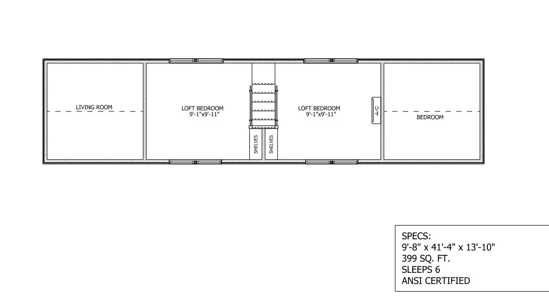 Size | 399 Sq Ft (9′-8″ x 41′-4″ x 13′-10″) |