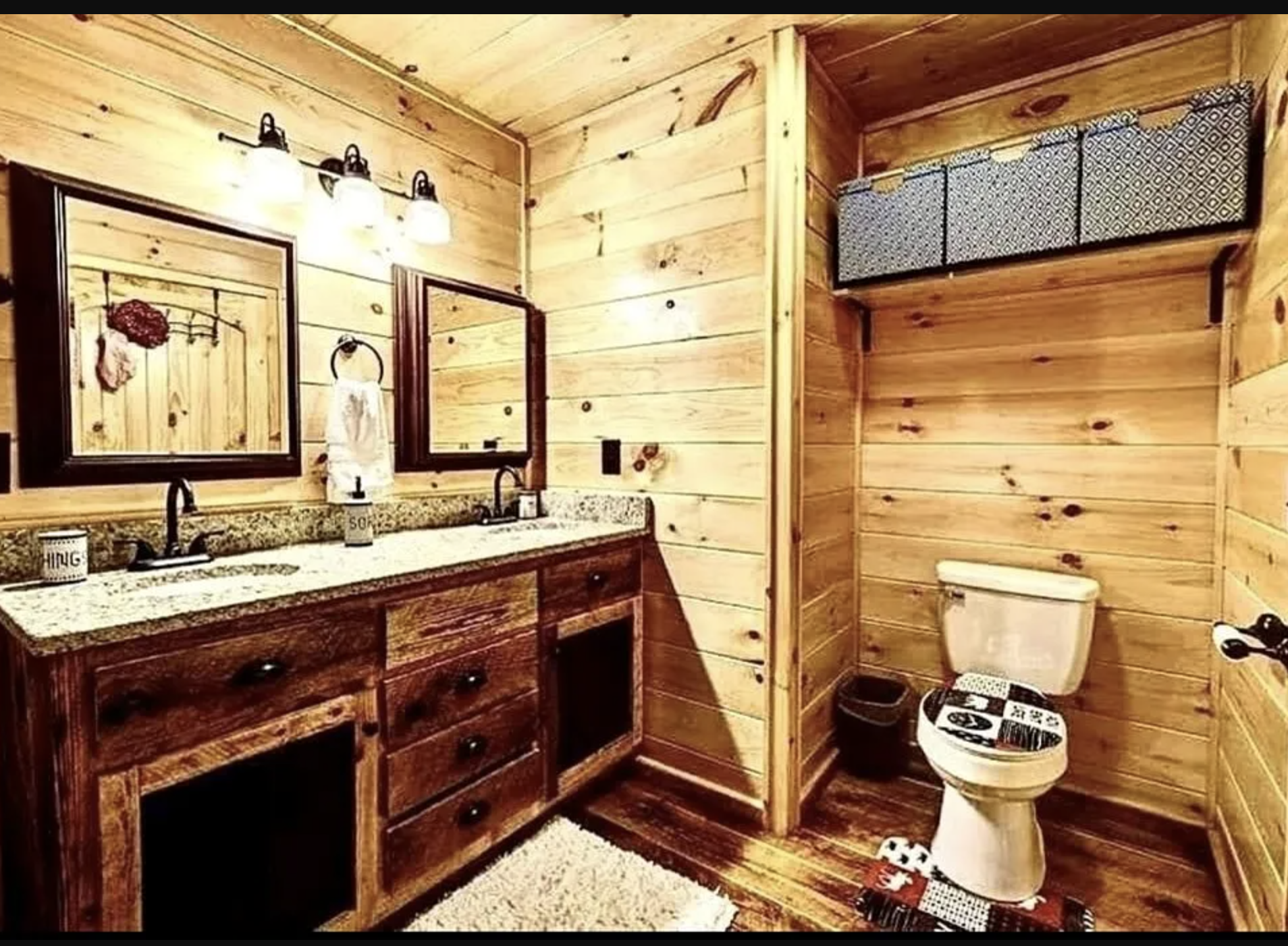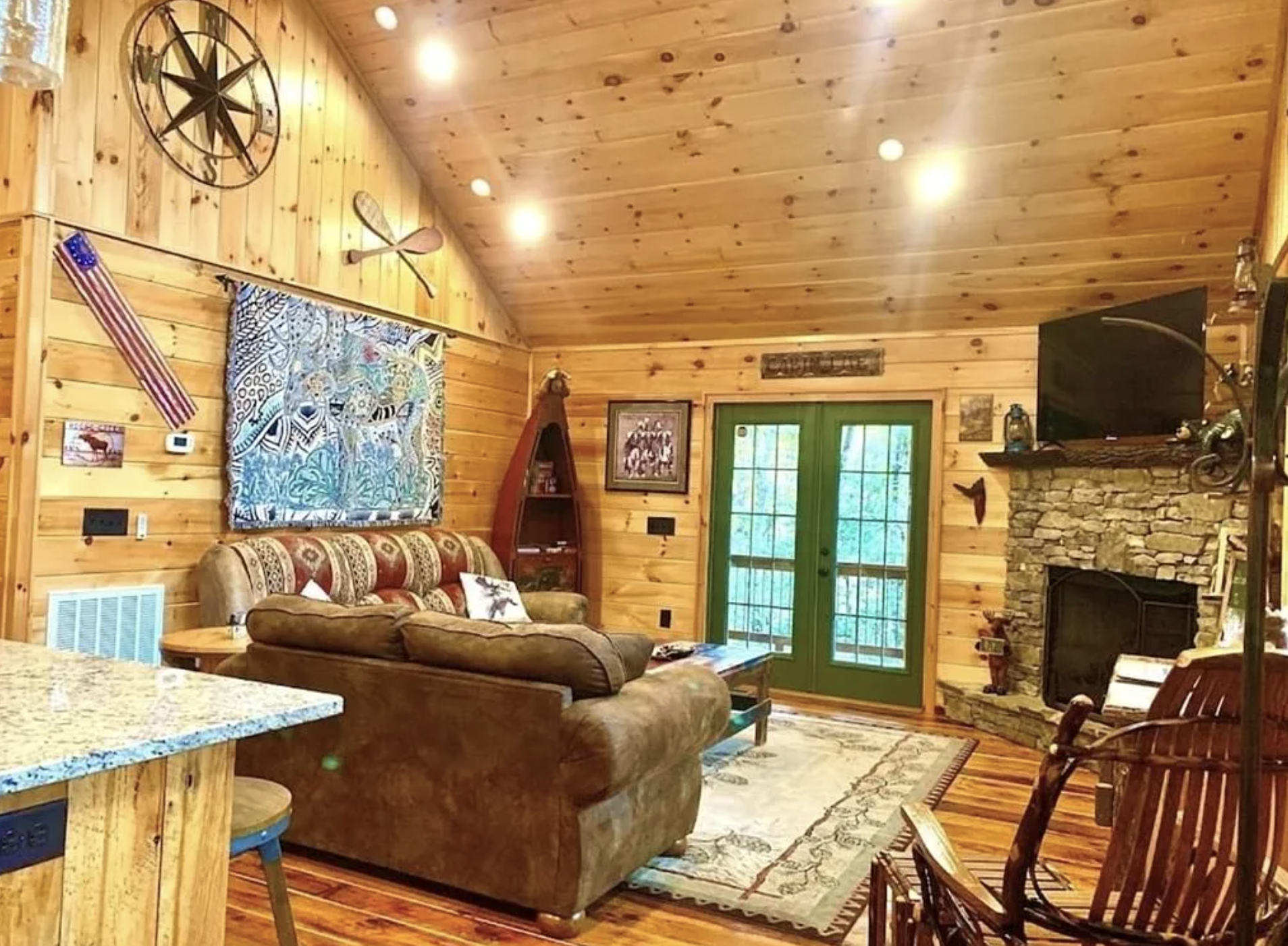 It is in the great outdoors that the true charm of the cabin is revealed. By far the most favored morning spot or the evening retreat here is the huge porch. Being surrounded by nature you get to enjoy gorgeous 360-degree views of the mountains and valleys that help you forget about time and the world below. What a cozy fire pit with a nice stone deck comes with is a perfect stemming place for cheerful talks under the star-lit dark sky. Level parking is definitely a great addition to the cabin as it not only makes coming in and out a breeze but also demonstrates the practical side of the house. As far as the location of the cabin is concerned in terms of privacy, it prevails. No other noise apart from the one coming from the nature itself can be heard here.