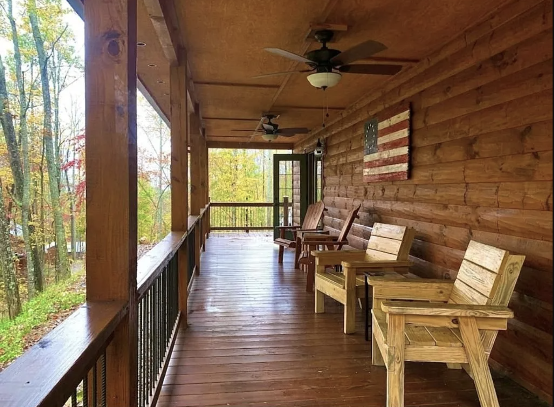 | Amenities | Gas fireplace, spacious porch, fire pit |