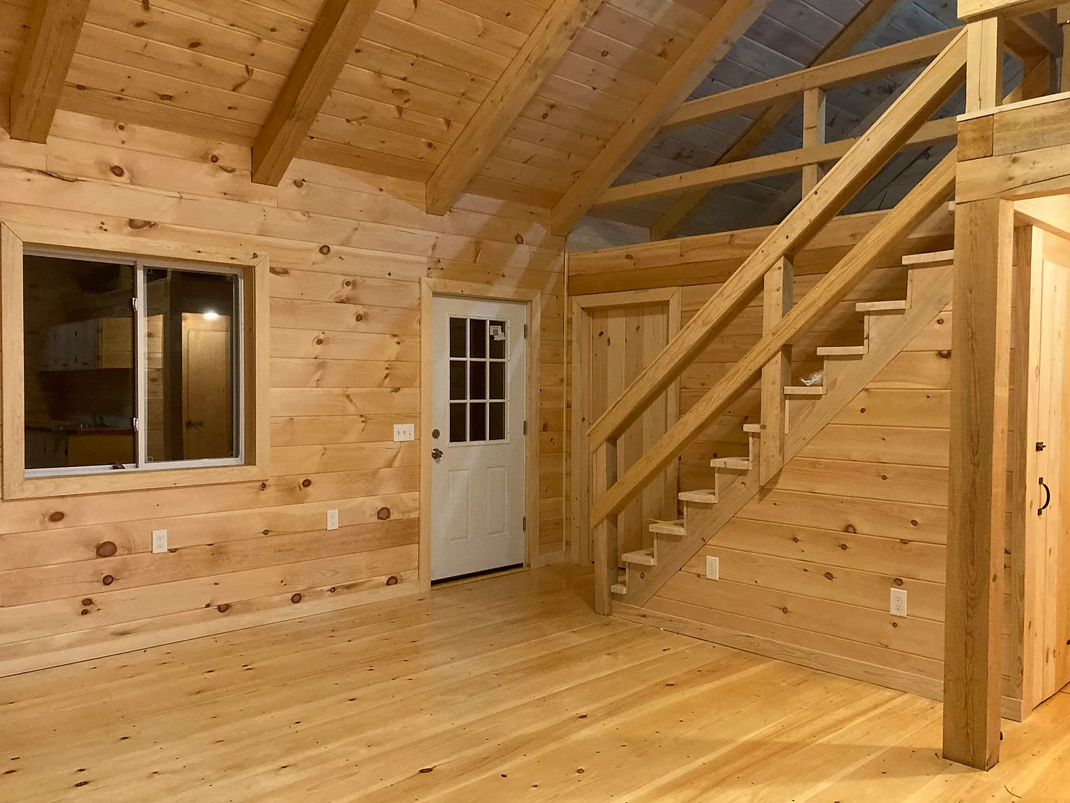 | Interior | Cathedral ceilings, exposed beams, loft |