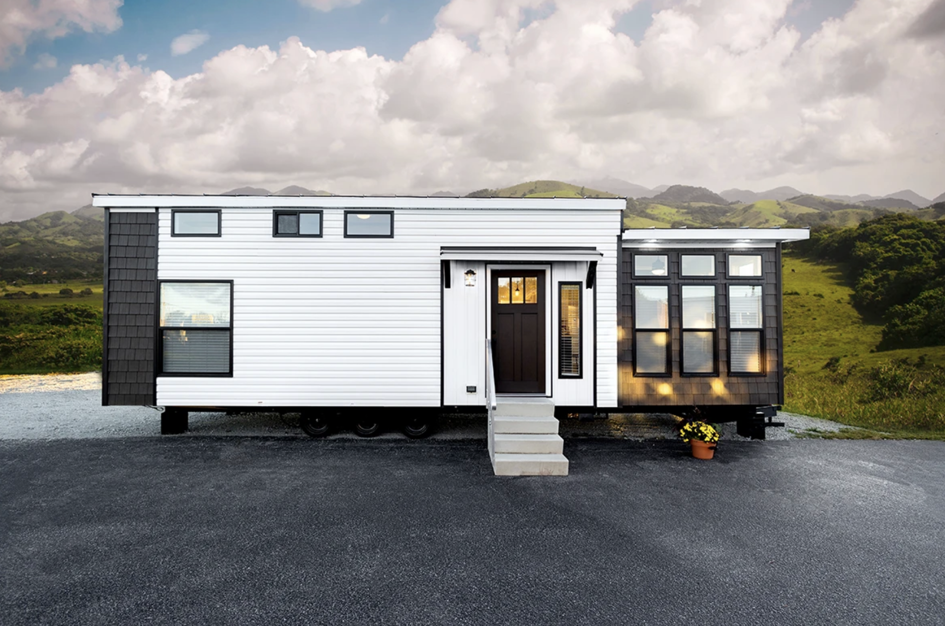 The bedroom becomes a peaceful oasis for the user with the inclusion of a king-size bed fitted with a luxurious bedspread, very inviting for sleeping under the elevated ceiling of the cabin. A 60-inch walk-in tile shower is what the small bathroom offers, wrapped in luxury just like the spa but in very little space. The Viewrail loft railing is a nice architectural feature that opens up a possibility of small loft area that can be used for storage or as a cozy reading nook. A place to watch films is created in the living room with the addition of a 65-inch TV with surround sound while a smart thermostat guarantees comfort through the whole year by providing exact climate control. The washer/dryer if chosen as an option (or a pre-installed stacked unit) makes the Eldorado 9020 perfect for long-stay or permanent living situations.