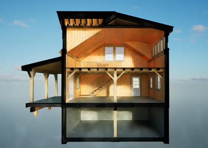 The unfinished interior of the Hideaway invites a deeply personal journey, turning the space into a reflection of its owner’s vision. The 24×30 base, expanded by the second floor and dormers, can be transformed with drywall and flooring for $1,500-$2,000, creating distinct rooms or an open layout. The porch might be furnished with seating or a table for $200-$400, and lighting or heating could add $600-$1,200, depending on the setup. Building on a concrete pad keeps costs manageable, while a full foundation with a basement—adding $5,000-$10,000—expands storage or living space. This hands-on process fosters a sense of ownership, whether crafting a quiet office, a guest suite, or a creative studio, with the freedom to finish it over time. The starting price of $61,618 for the Frame Only Kit from Jamaica Cottage Shop makes this customization accessible, a foundation for a home built with care.