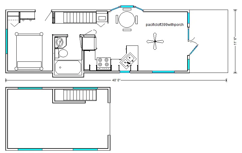 Exterior Dimensions | 15’10”H x 13’10”W x 40’L (includes 7’ porch) |