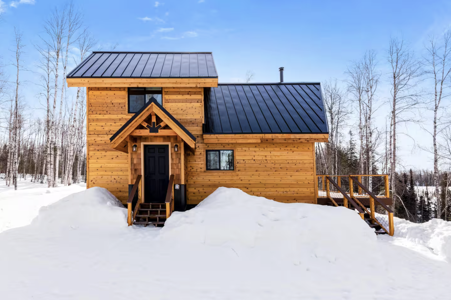 Within, the bedroom emerges as a haven of peace, the queen bed draped in linens that invite a deep rest, the window framing a glimpse of the towering trees outside. The loft, reached by a sturdy ladder, unfolds as a whimsical retreat, its carpeted floor scattered with string lights, books, and games—a space where children might dream or a solitary soul might lose themselves in a novel. The railroad-themed decor, a nod to the land’s past, adds a touch of character, the window offering a rainy-day perch to watch the world soften. This upper nook, though modest, holds a quiet elegance, its beauty in the way it invites imagination to roam free amidst the logs.