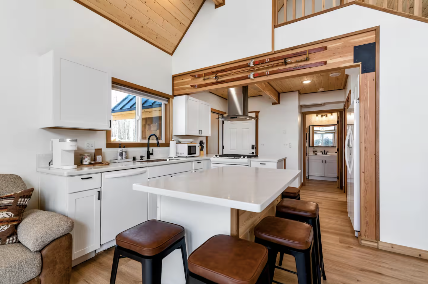 The light that pours through the windows bathes the cabin in a golden hue, illuminating the queen bed, the loft’s reading nook, and the kitchen counters, casting shadows that dance with the fire’s flicker. The heating and air conditioning maintain a perfect balance, the hot tub and fire pit extending that comfort into the night. The bathroom’s shower refreshes, the living area’s loveseat cradles, the loft whispers adventure—each element weaving a tapestry of peace and connection to Seneca Rocks’ wild heart. For booking availability, you can check the Airbnb listing.